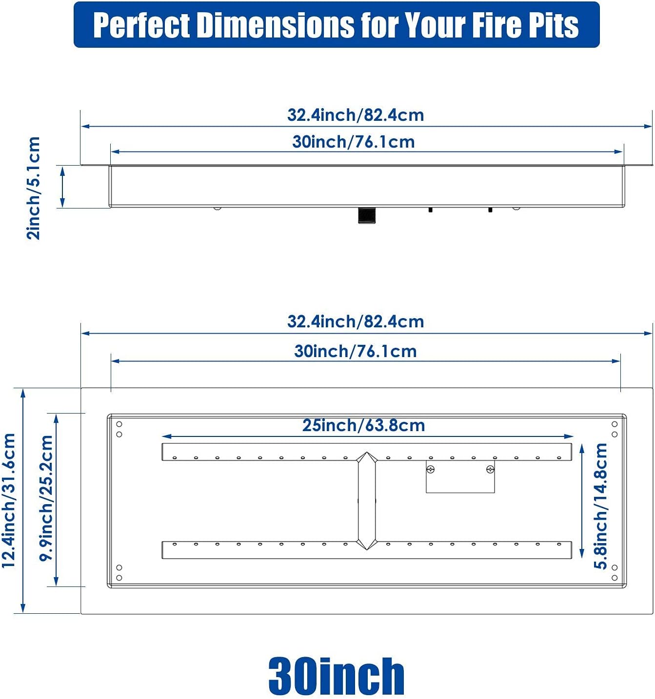 GRISUN Drop-in Fire Pit Kit 30 x 10 Inch,H-Shape Burner with Pan