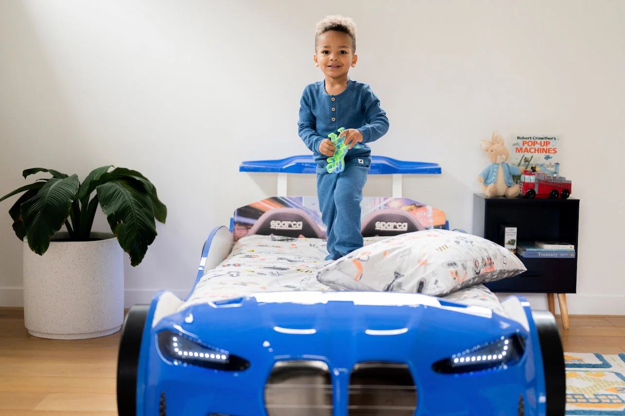 The latest in kids’ race car bed design is here! The Gtx 2.0 Race car bed is exclusive to Kids On Wheelz and features stunning race car looks with LED headlights, wheel lights, and real race car sounds all controlled easily via remote, A Made In Turkey Product.