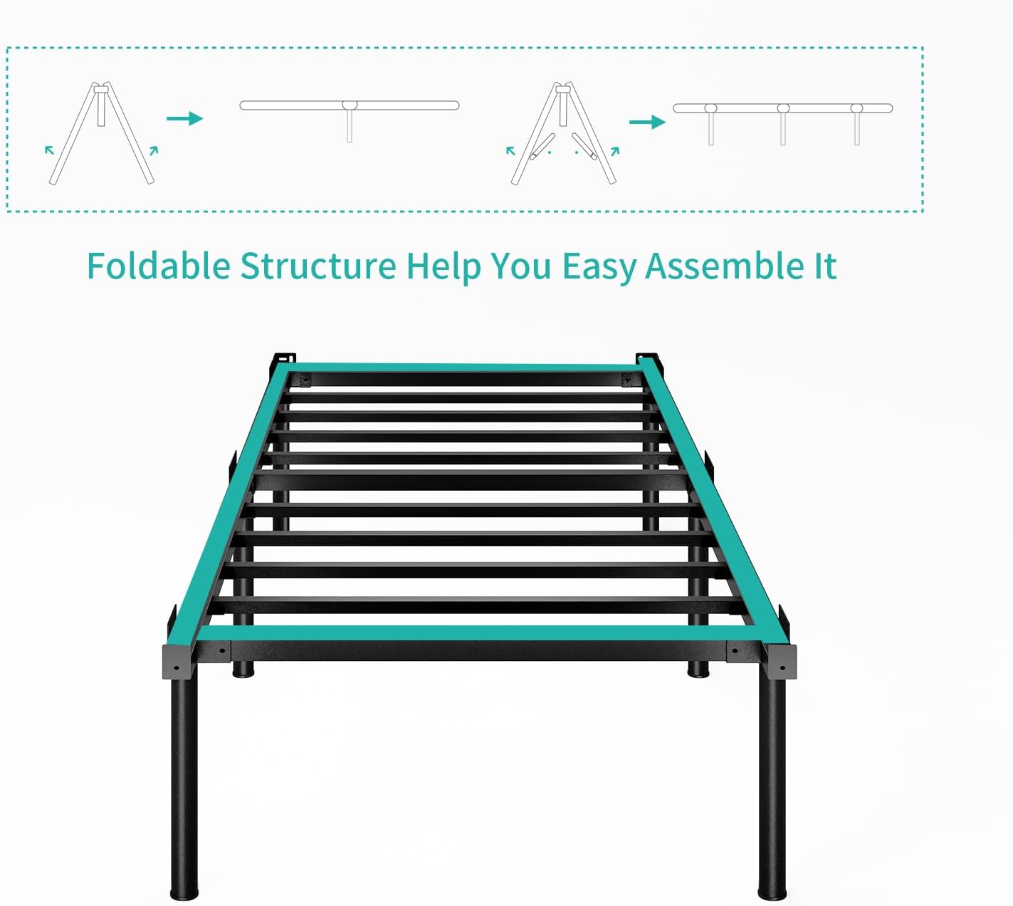 HAAGEEP Tall Platform Bed Frame Twin Size Metal Bedframe No Box Spring Needed