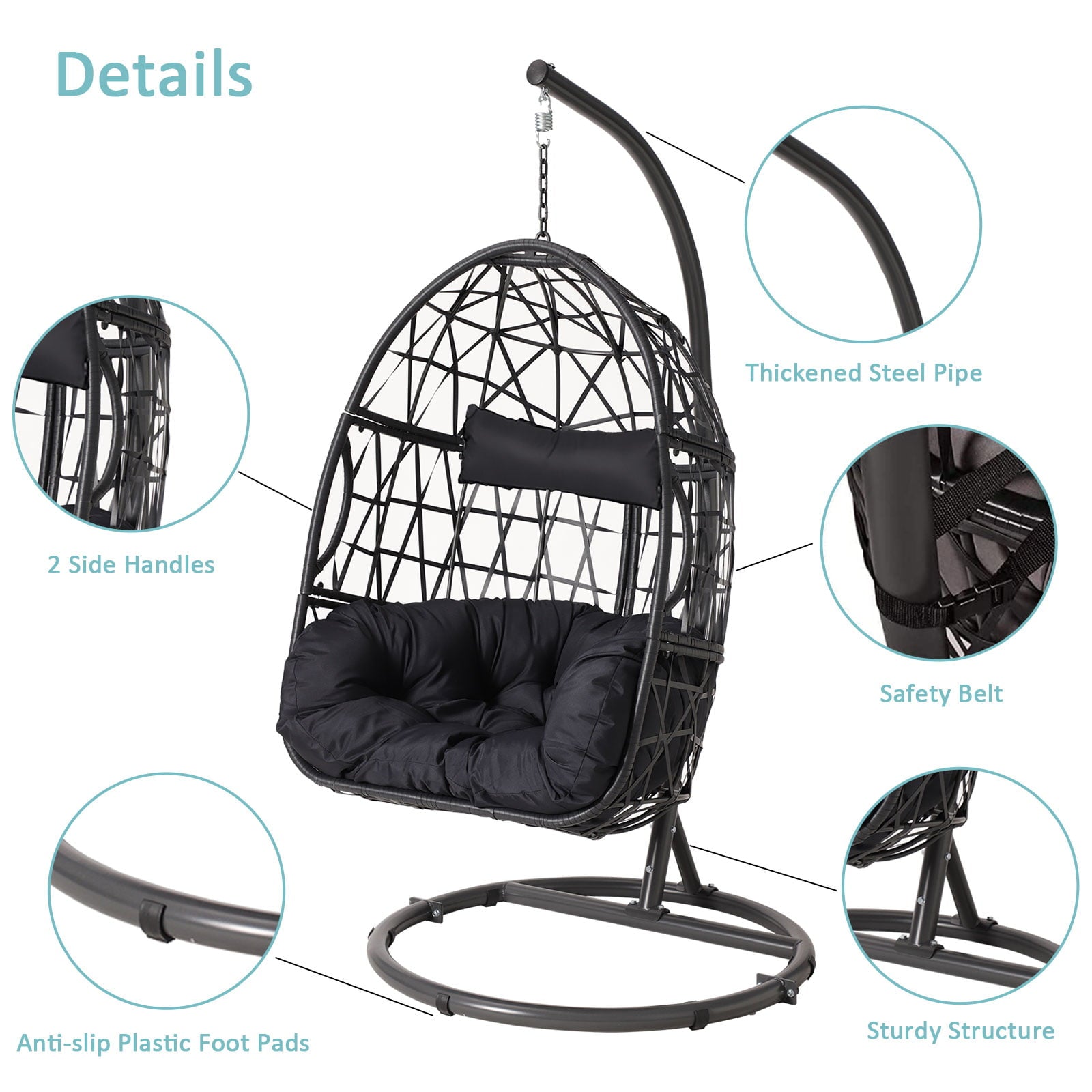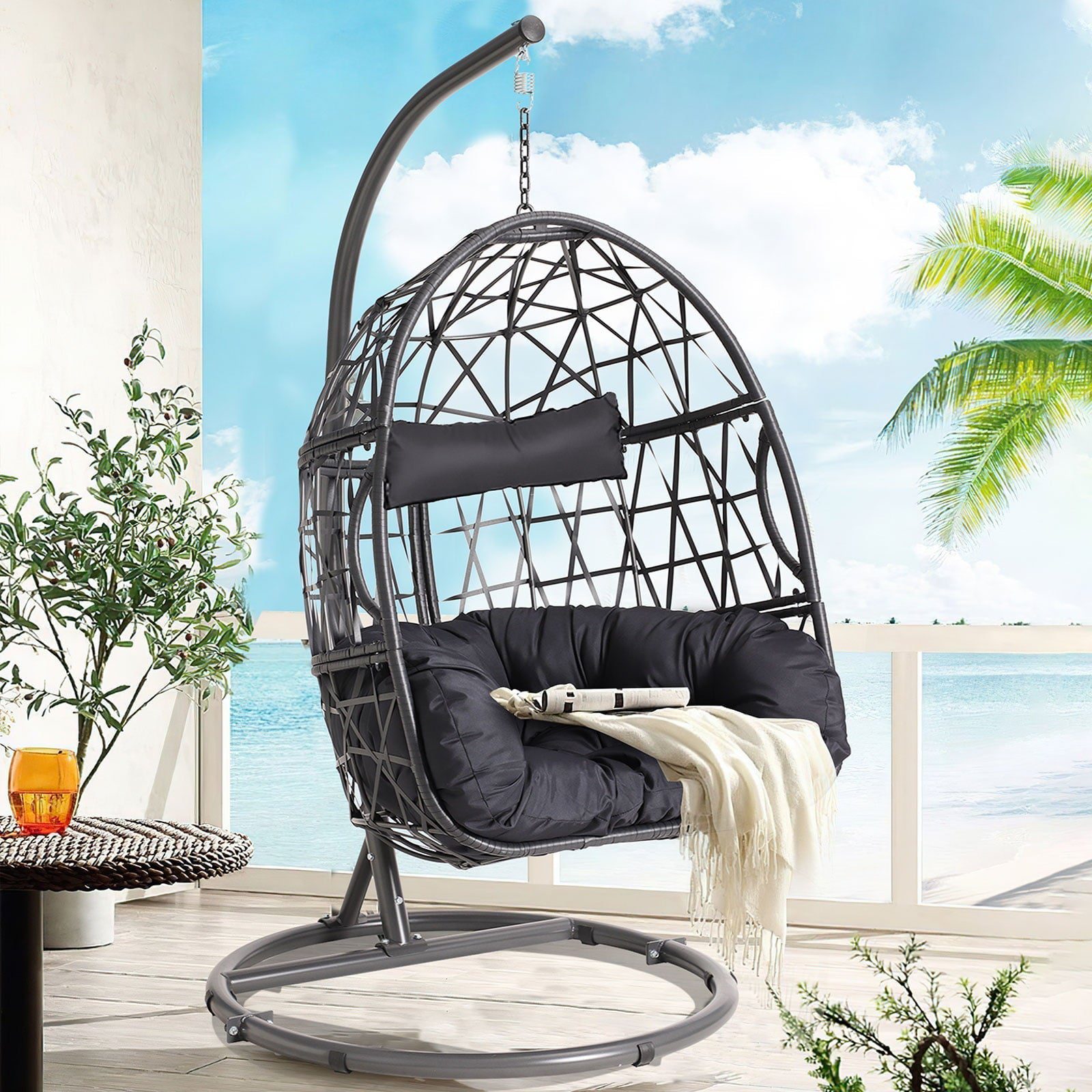Haverchair Egg Chair with Stand Outdoor Patio Wicker Hanging Chair Swing Chair with Cushion