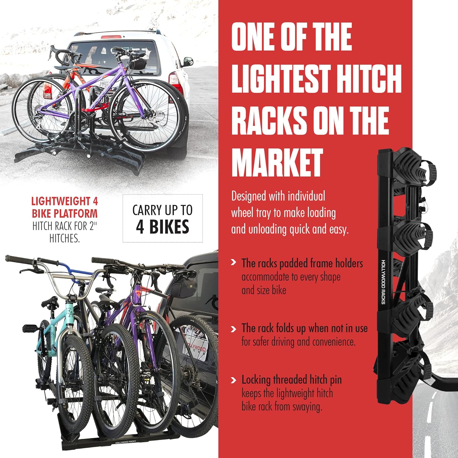 - Securely transport up to 4 bikes (max load 35lbs per bike) with this lightweight platform hitch carrier. Includes locking threaded hitch pin