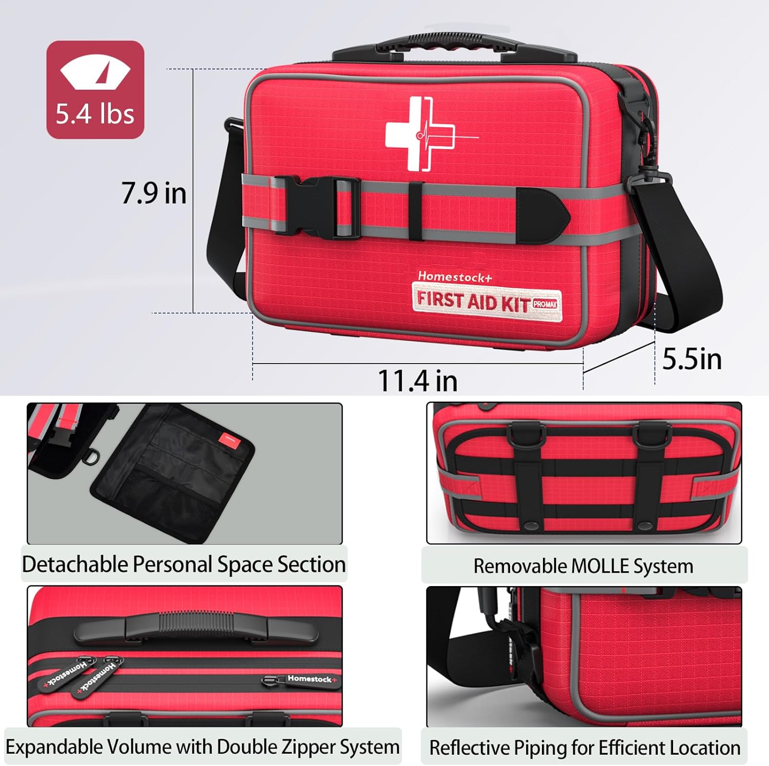 - Upgrade the Design of the First Aid Bag: Our professional team developed an expandable volume with a double zipper system. The height is increased by 2.1 in for more space. Also, the detachable personal space section allows customization.