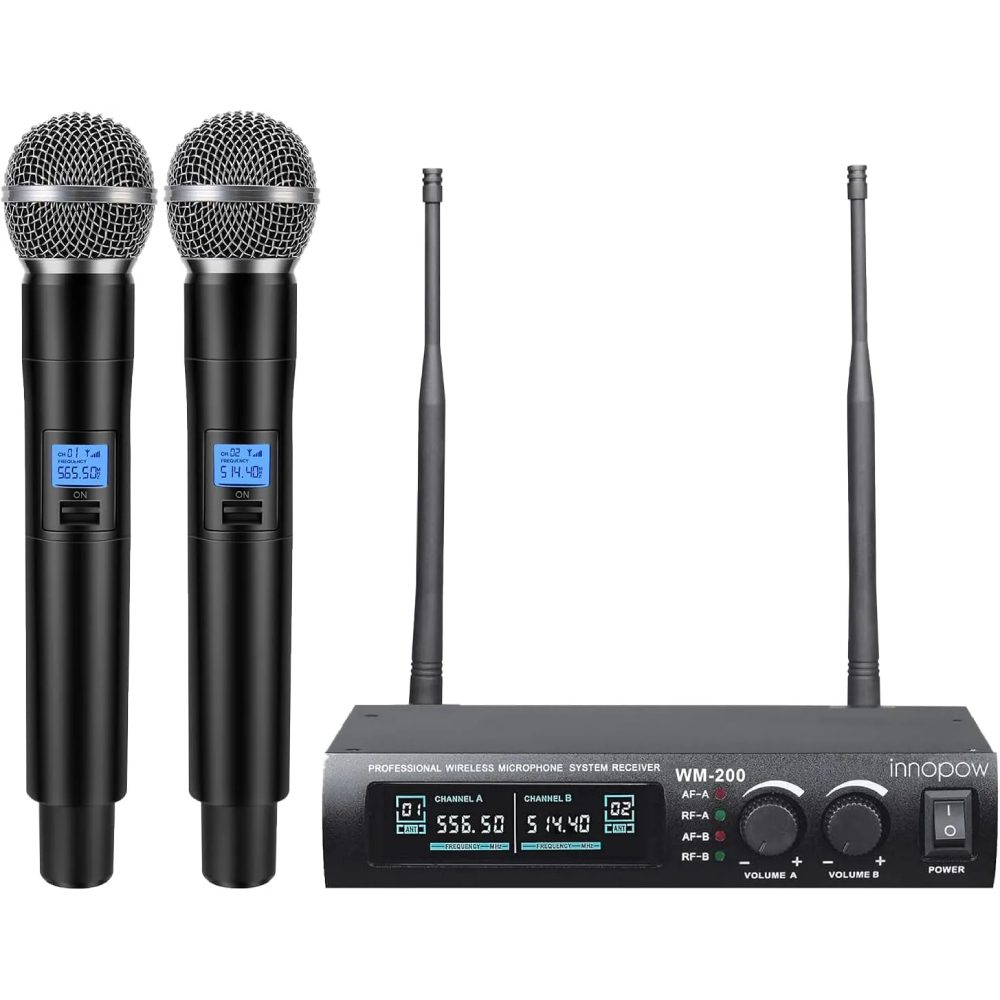 Innopow Dual UHF Metal Cordless Mic Set 16 Hours Continuous,Fixed Frequency