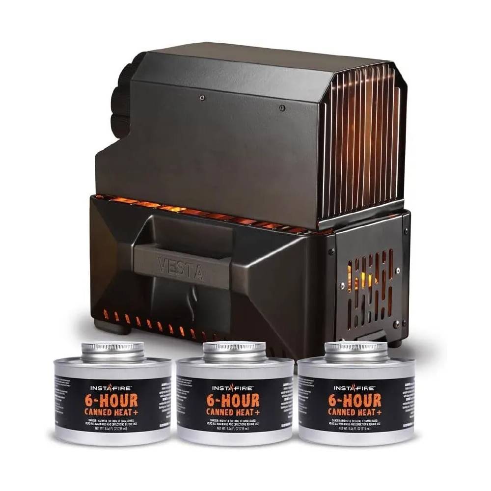 - Holds up to 3 Canned Heat (The Insta-Fire Vesta Stove Includes 3 cans) *** Shelf Life Insta-Fire Canned Heat: When stored in ambient conditions above its freezing point, this product will last for many years. Product may freeze when temperature reaches 16 degrees Fahrenheit (-8 Celsius).