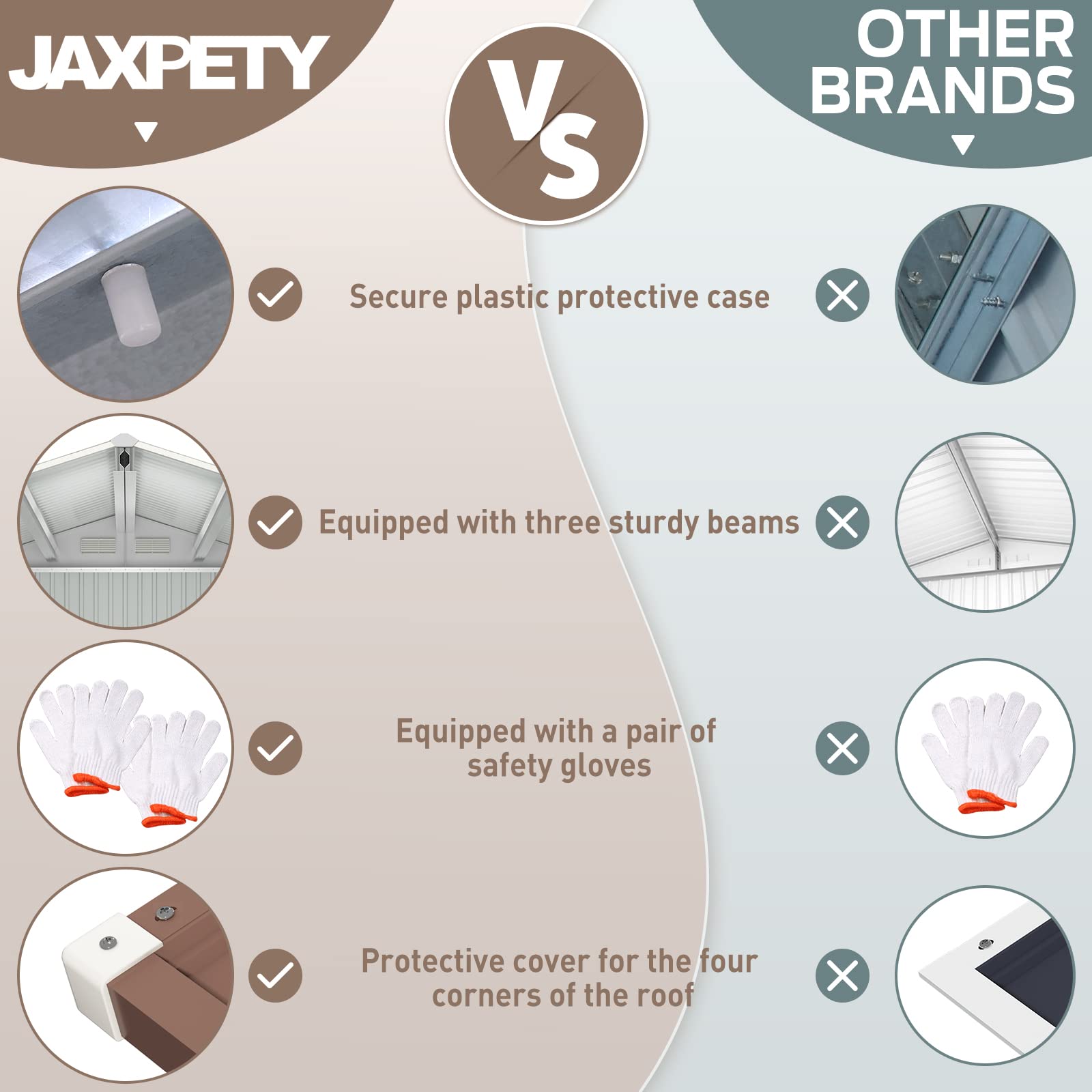 - ud83dudd27u3010Sturdy Metal Shedu3011:This tuff shed is made of thickened galvanized steel, which is waterproof, rust-proof and UV-protected, making it easy to cope with all kinds of bad weather. The roof is also reinforced with 4 heavy-duty beams from 3 different places, making the whole structure more solid.