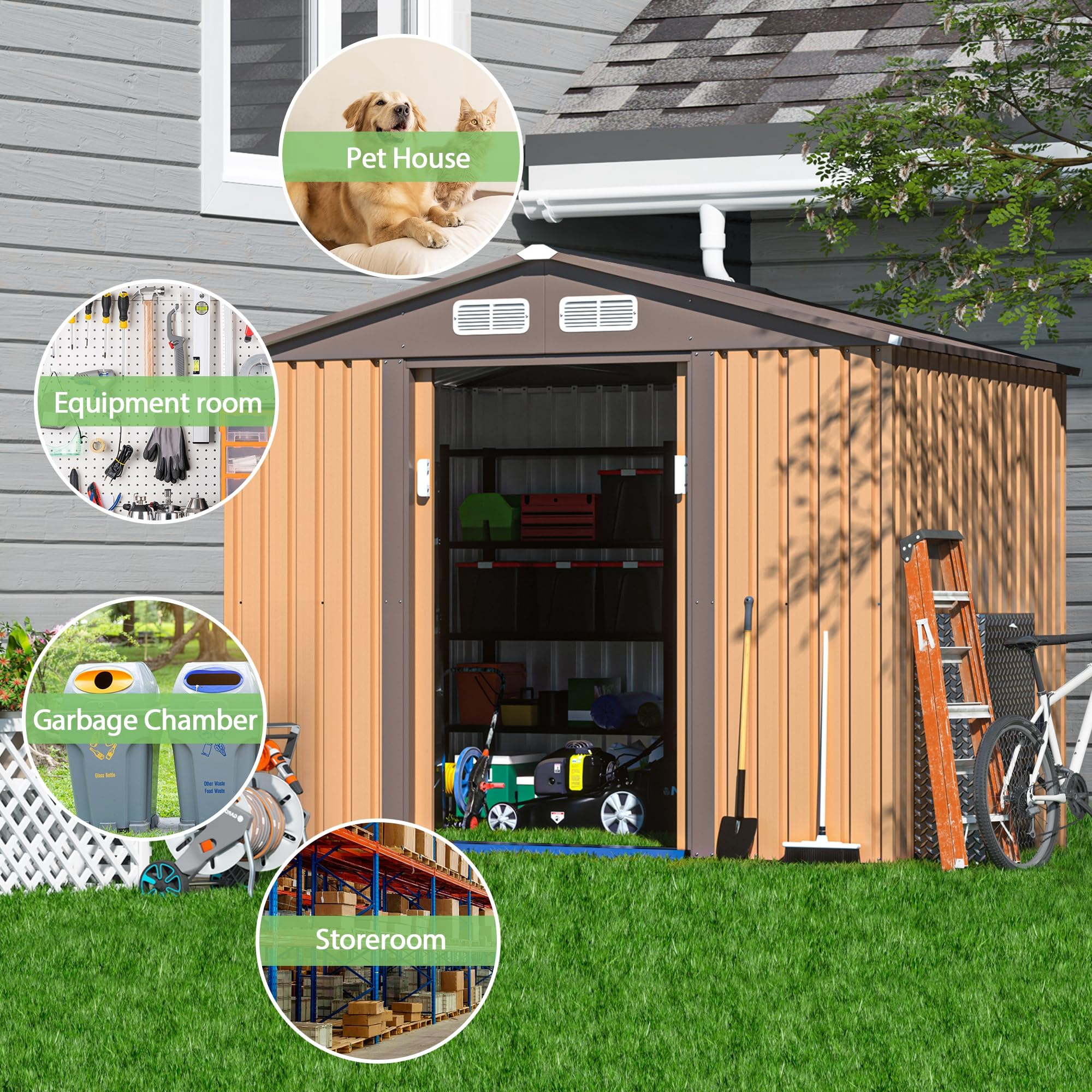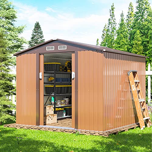 JAXPETY Sheds & Outdoor Storage 6×8 FT Garden Shed Tool Metal Outdoor Storage Shed with Sliding Doors for Backyard,Patio Coffee