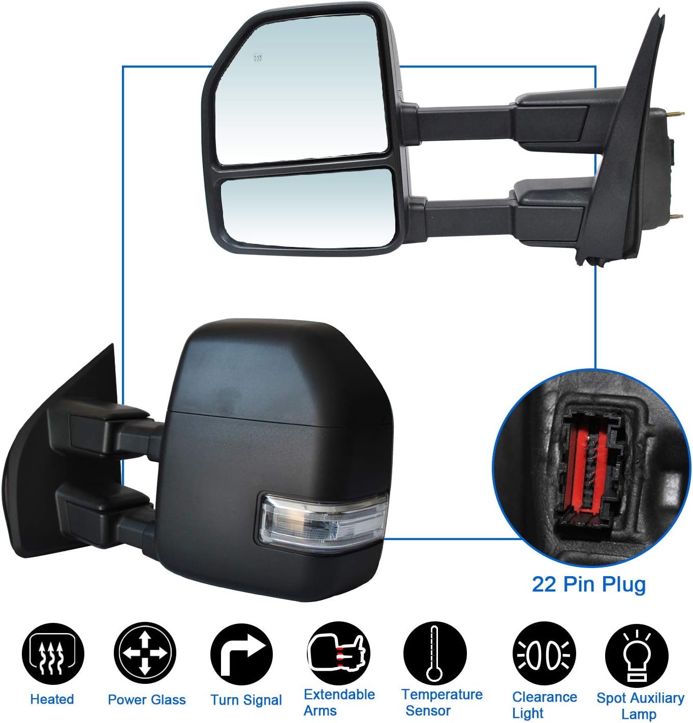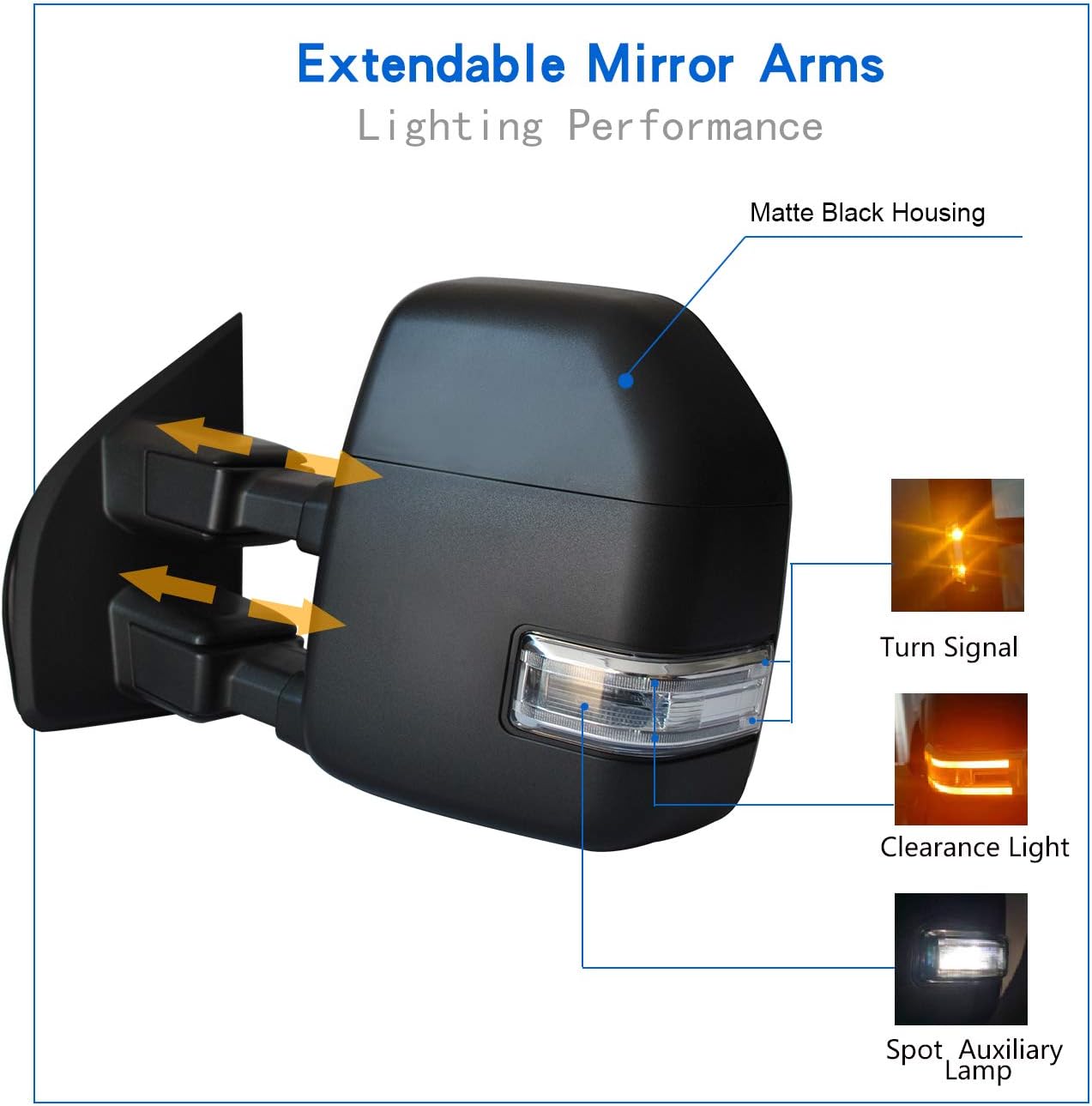 - ?SPECIFICS: Turn Signal Light/ Spot Auxiliary Lamp/ Heated / Power/ Temperature Sensor/ Manual Extendable Arms