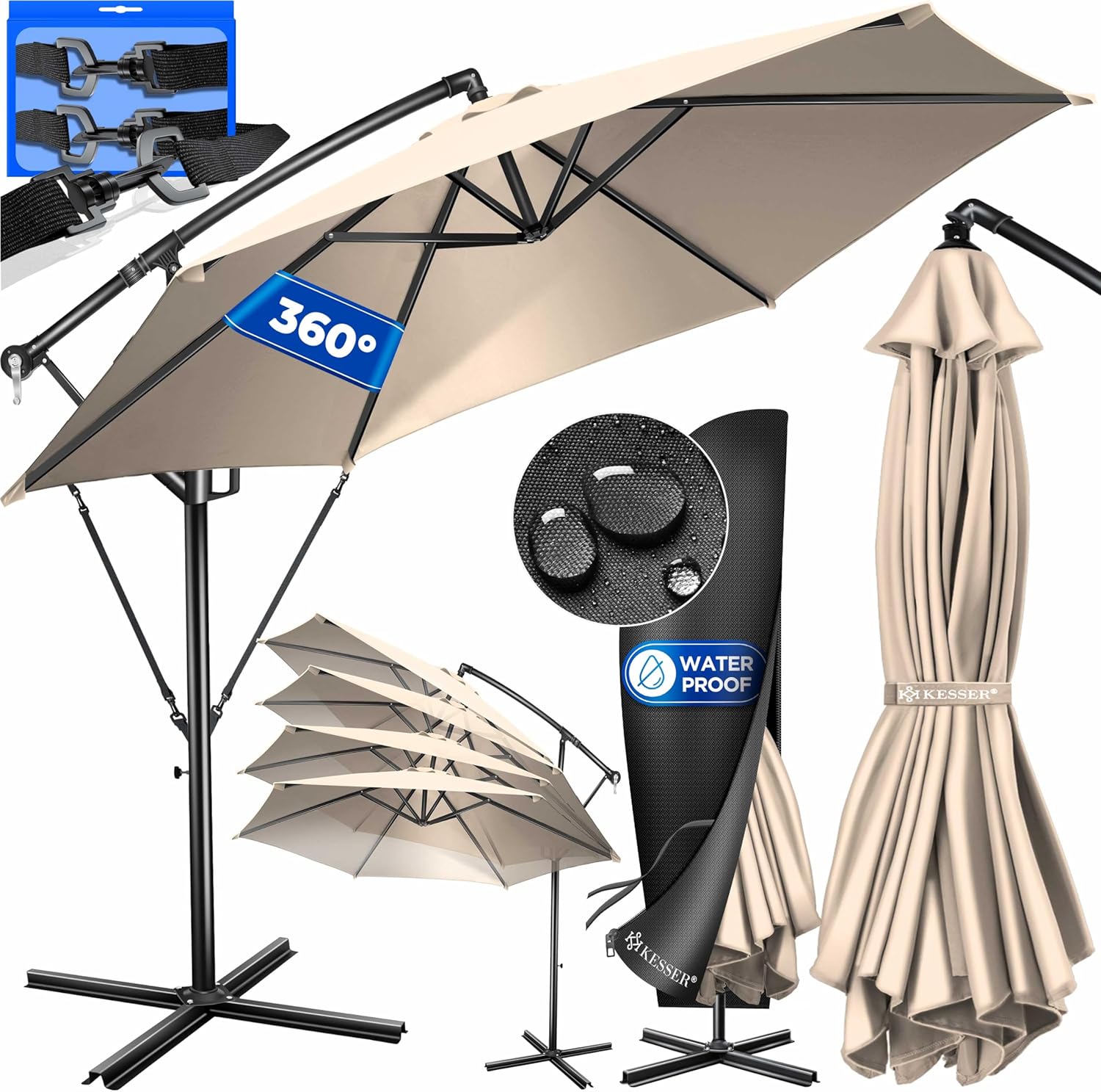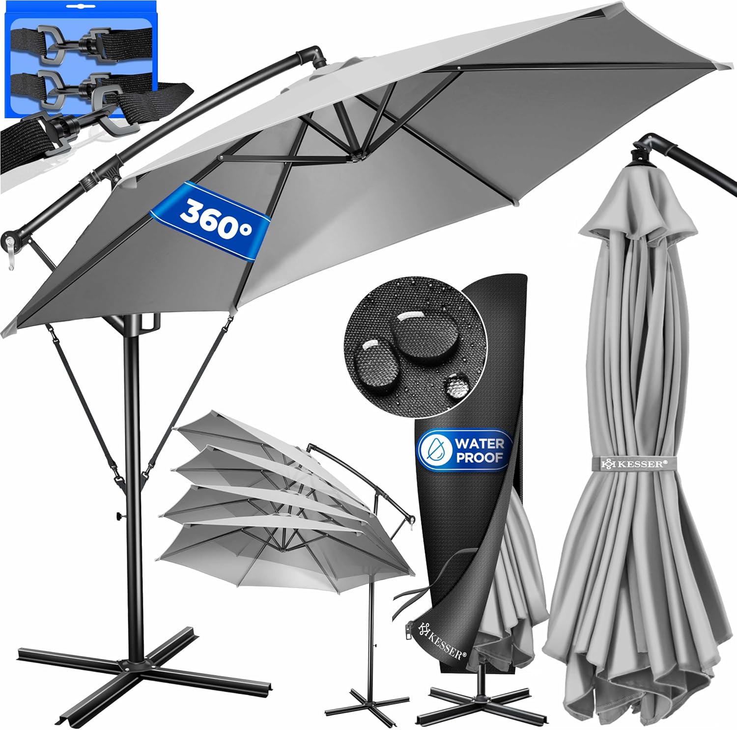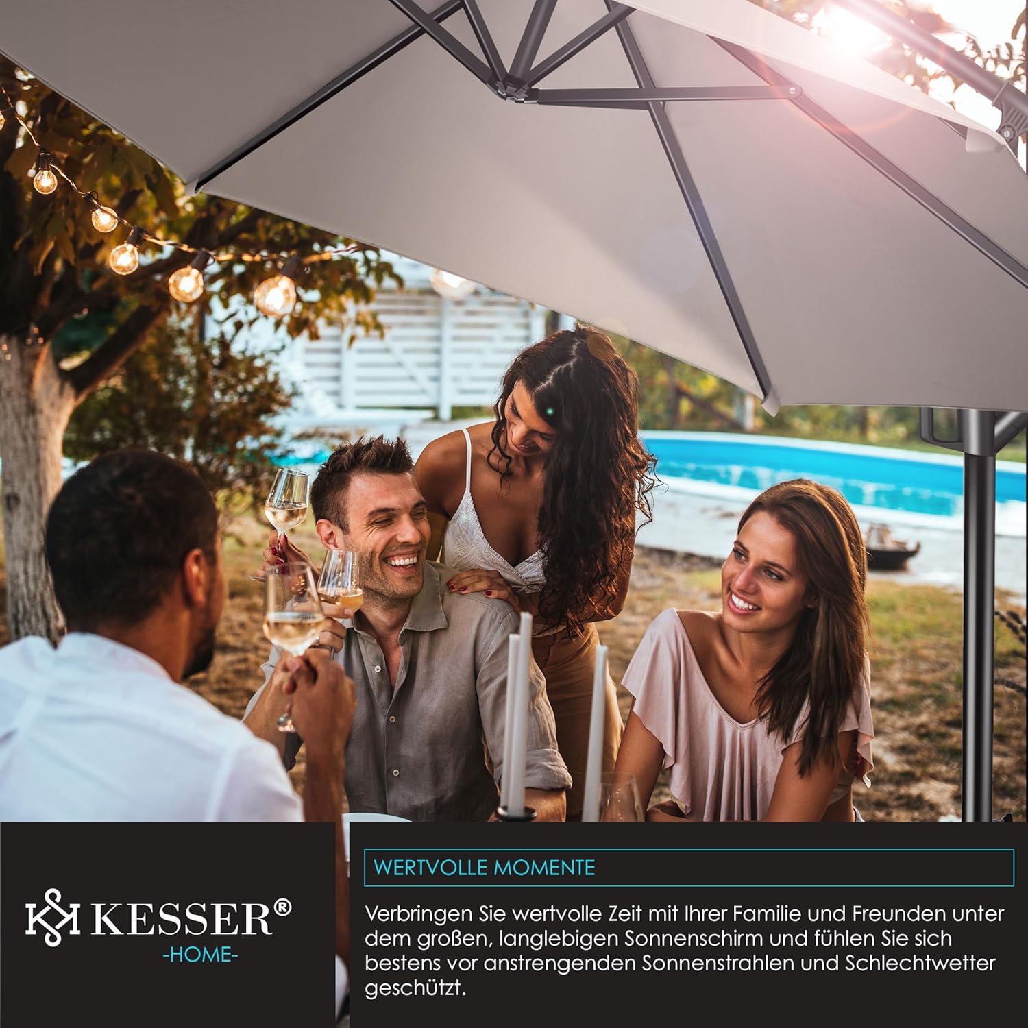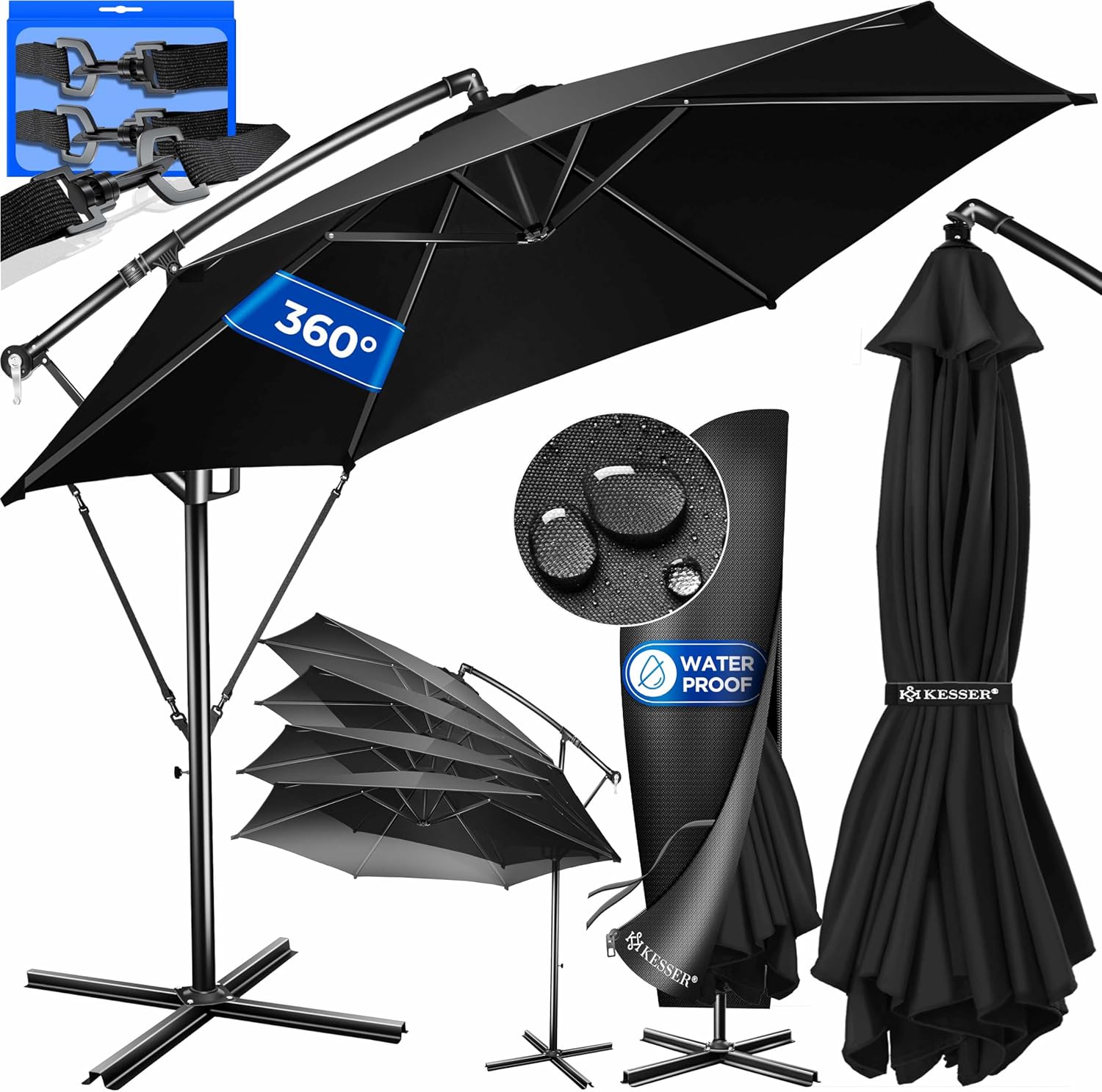 • Optimal protection: summer is within reach, a cloudless sky and the temperatures are fast up. With the KESSER parasol, you protect yourself and your guests from direct UV radiation and at the same time create a shady spot on your balcony, terrace or in the garden. Grab a cool drink, a good book and enjoy the day carefree with our great shade dispenser.