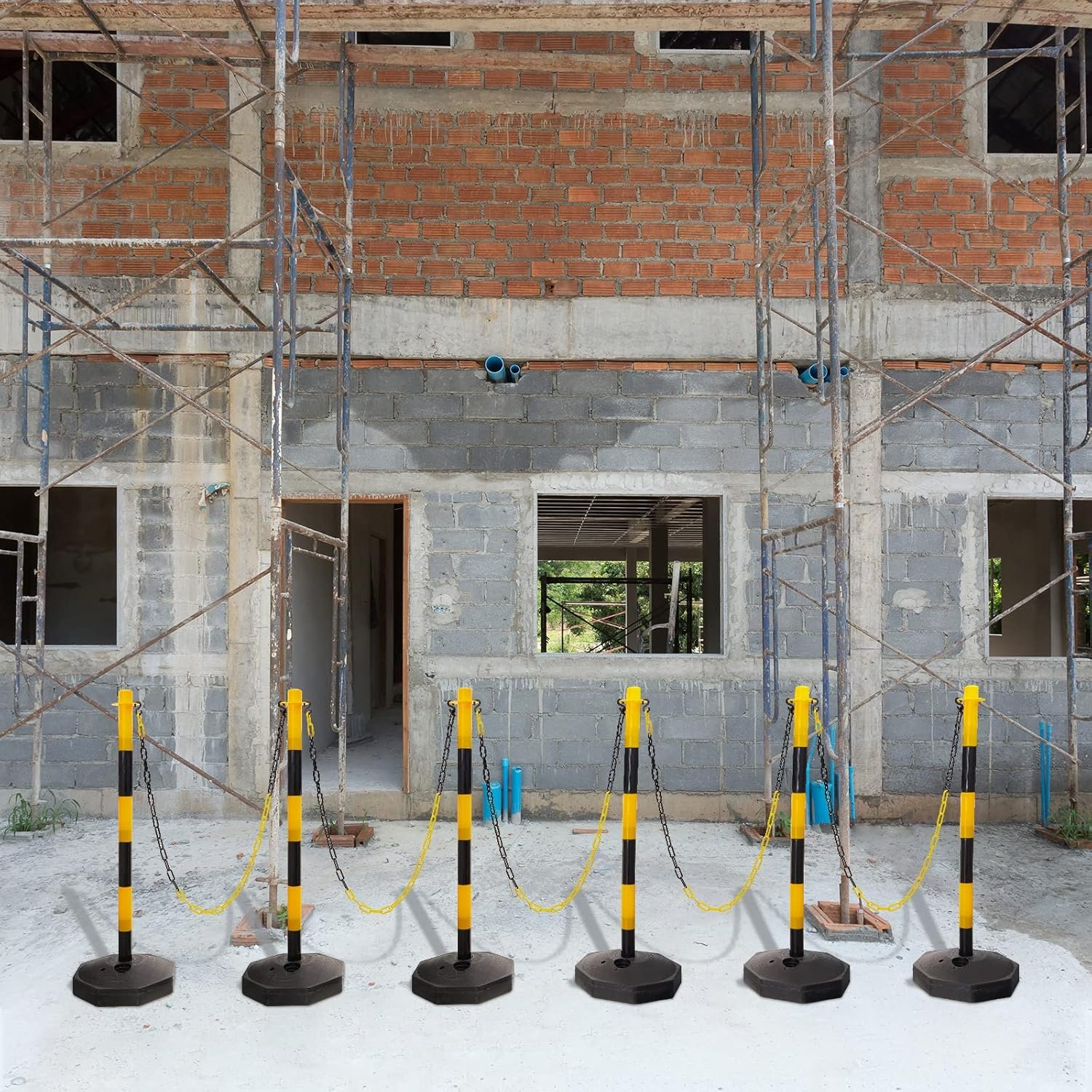 - Quality Material: these set of safety barrier posts are constructed of high hardness PP, PE material, high density PE rubber base and lightweight plastic chain, not easily corrode, rust, fade, or crack; It is also enough to work in some complicated environments, such as intense solar storms