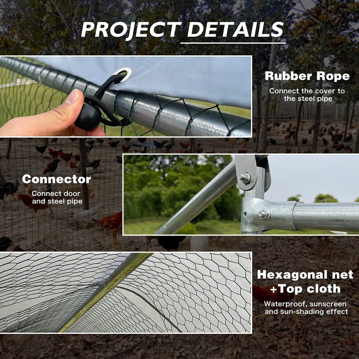 - ??Anti- Rust and Durable Steel Structure??The chicken coop uses a high-quality steel pipe frame, coupled with galvanizing technology, don’t worry about rusting in outdoor. The steel pipe is strong and stable enough in windy and heavy rain.