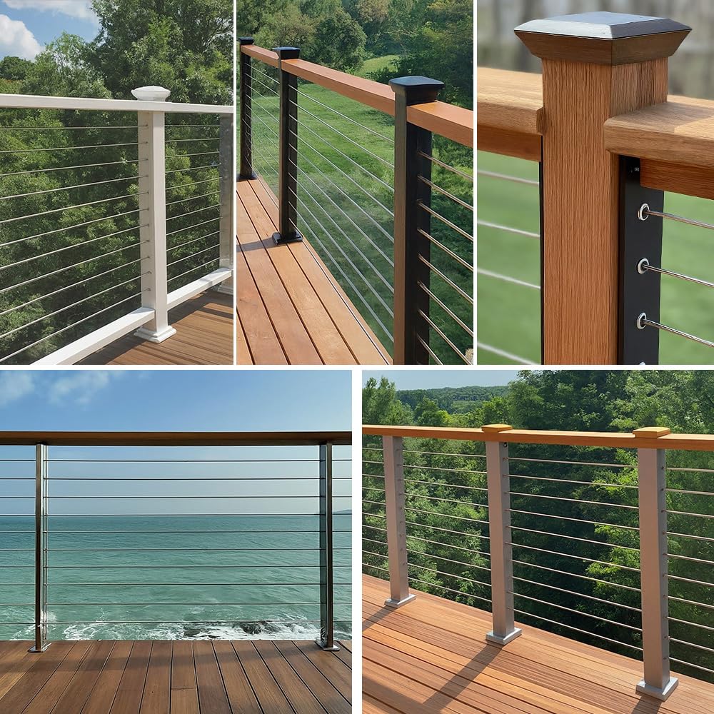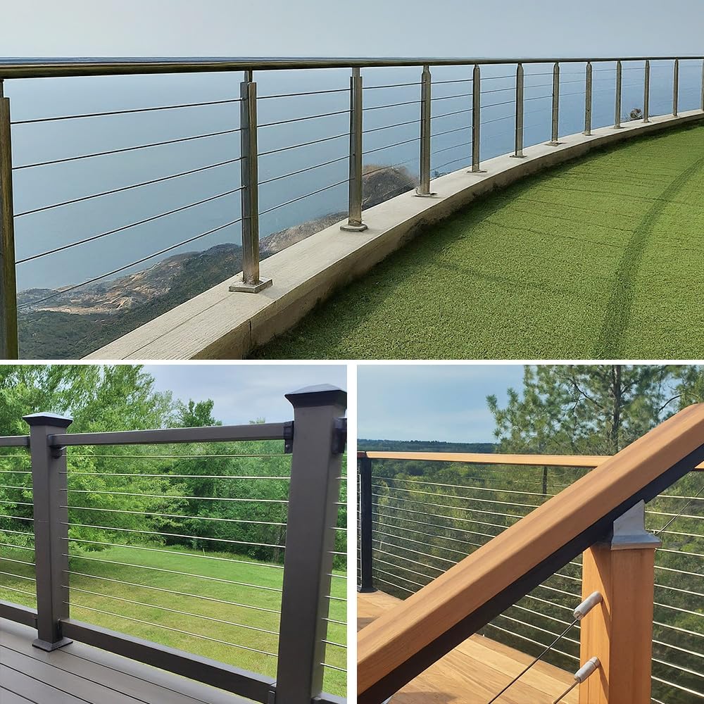 - Versatile Applications:Ideal for various applications, including deck embellishment, outdoor fencing, stair handrails, gardens, air suits, cable railing, net suspensions, animal leashes, rope and winch, picture hanging, railings, decks, DIY railings, marine hardware, and more. Its flexibility and strength make it an ideal choice for multiple purposes.
