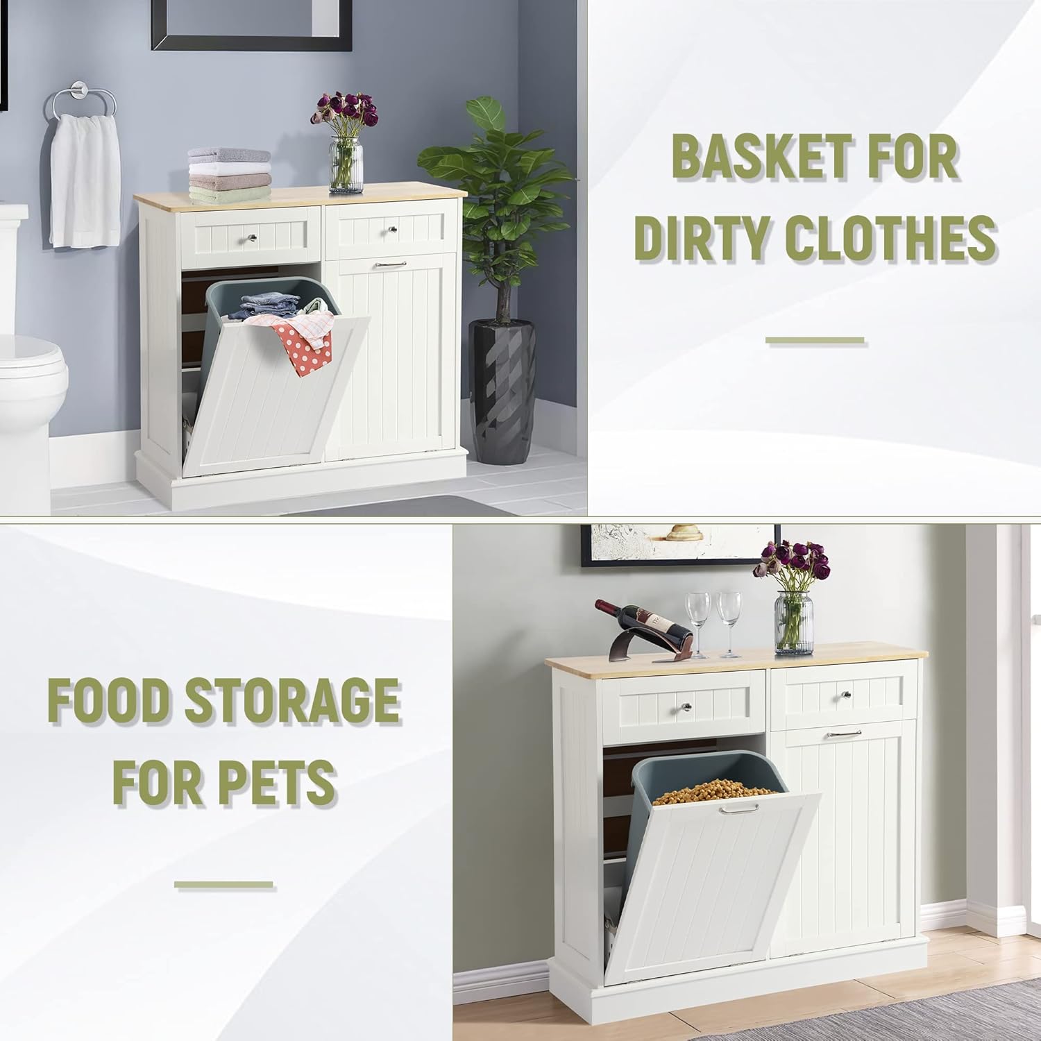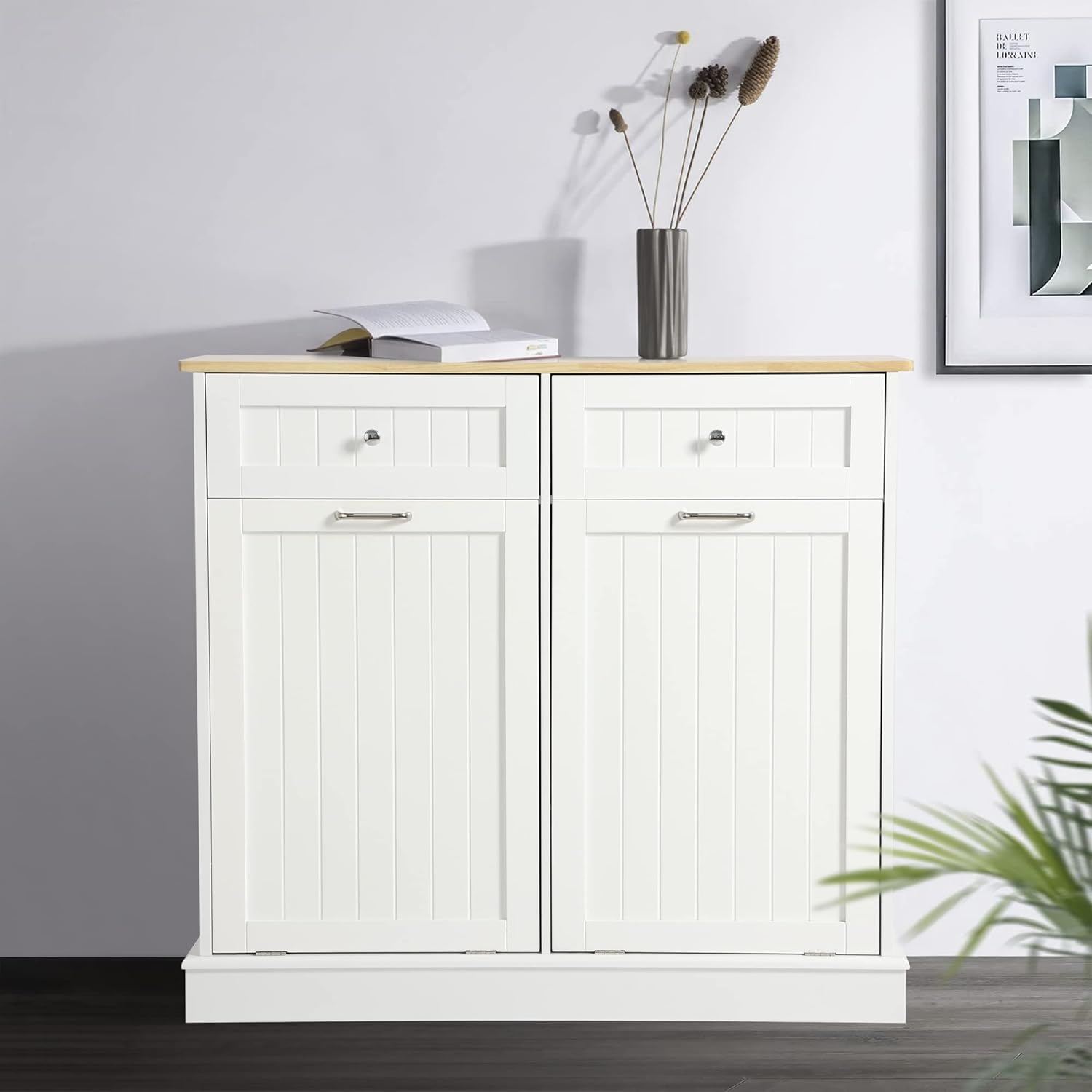 LOUVIXA Tilt Out Trash Can Cabinet with Double Hidden Trash Can Holder