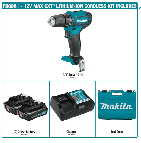 Makita 12V max CXT Lithium?Ion Cordless 3/8 Inch Driver?Drill Kit 2.0Ah Factory Serviced
