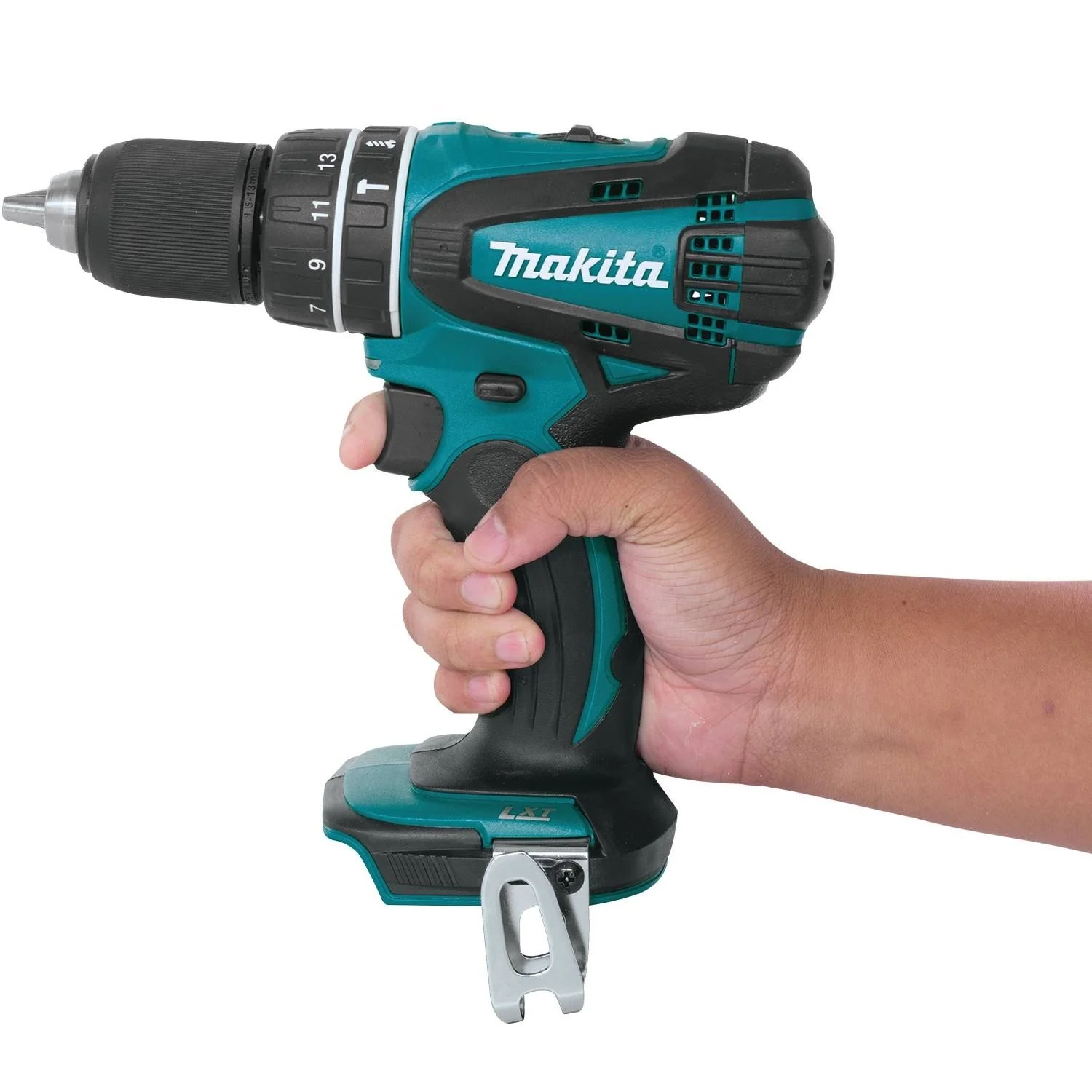 Get the right tool for any heavy duty hammer drilling application with Makita’s 18V LXT Lithium-Ion Cordless 1/2″ Hammer Driver-Drill (Tool Only) (LXPH01Z). Its 4-pole maximum torque motor delivers 480 in.-lbs. of Max Torque. The variable 2-speed design (0-400 and 0-1,500 RPM) covers a wide range of drilling, driving and hammer applications. It also has a newly redesigned rubberized soft grip provides increased comfort on the job. Plus, it has a built-in L.E.D. light with afterglow illuminates the work area.