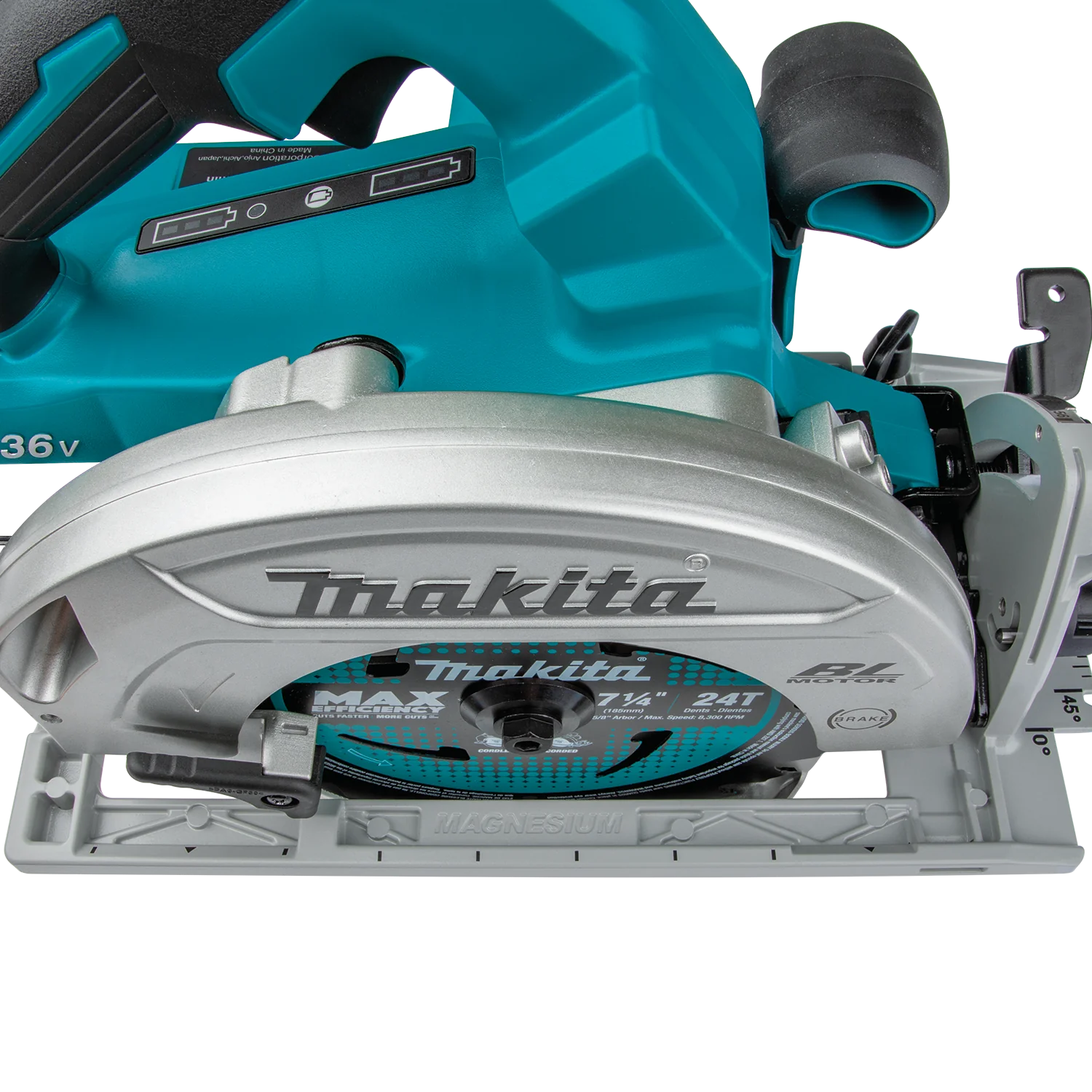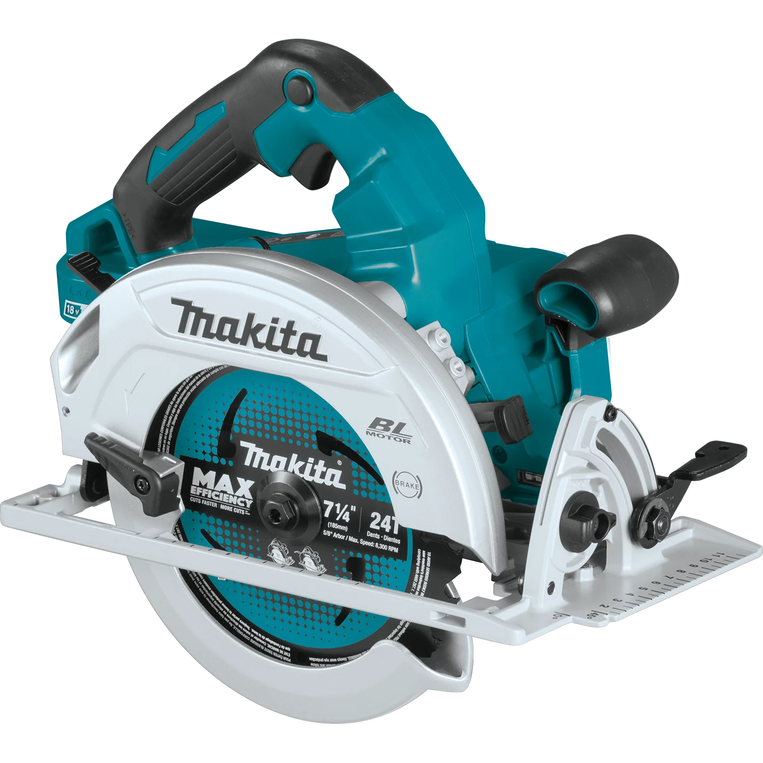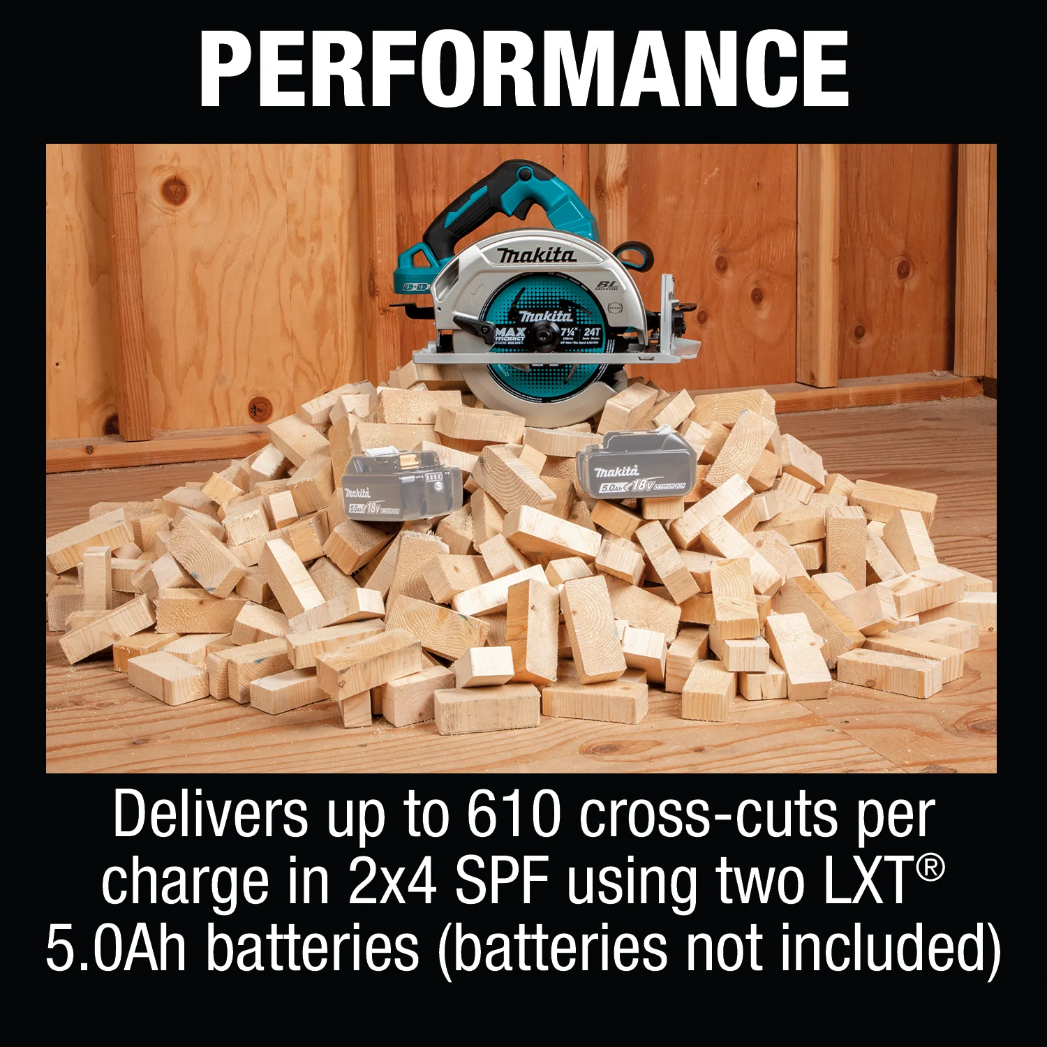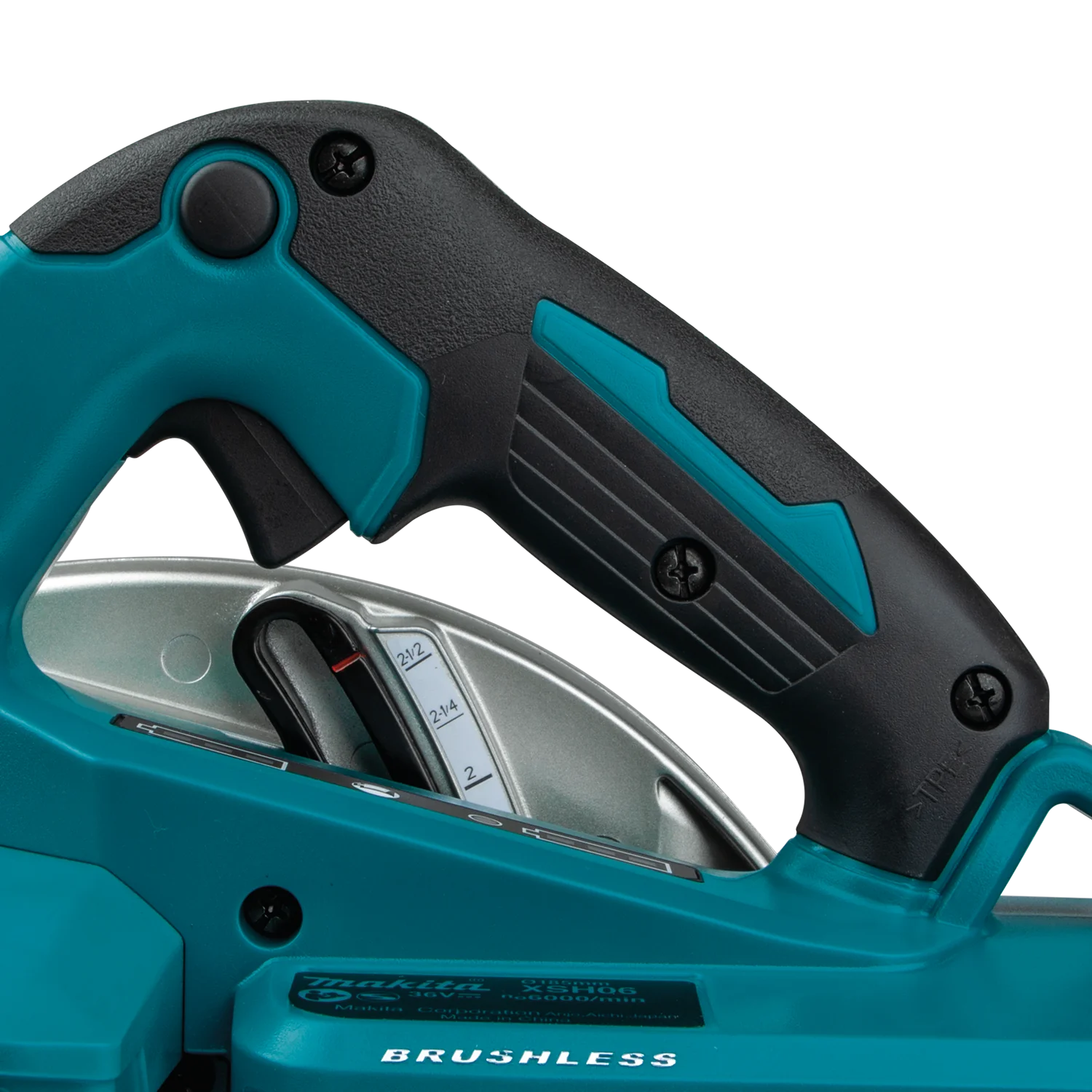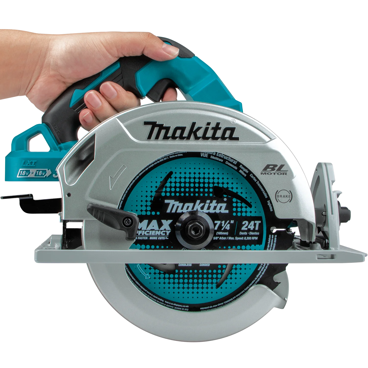 • Makita, a pioneer in brushless motor technology and battery innovation, combines both in the 36V (18V X2) LXT? Brushless 7-1/4?? Circular Saw Kit (XSH06Z). It’s powered by two 18V LXT? Lithium-Ion batteries (sold separately) for maximum performance, and has an electronically-controlled BL? Brushless motor that matches torque and RPM to the application. Makita 18V X2 means freedom from the cord, even for demanding applications like cutting sheet and dimensional lumber that traditionally called for a corded saw. Best of all, users can remain in one battery platform, using the same fast-charging 18V batteries with the XSH06Z as they use across the expansive Makita 18V LXT? cordless tool system.