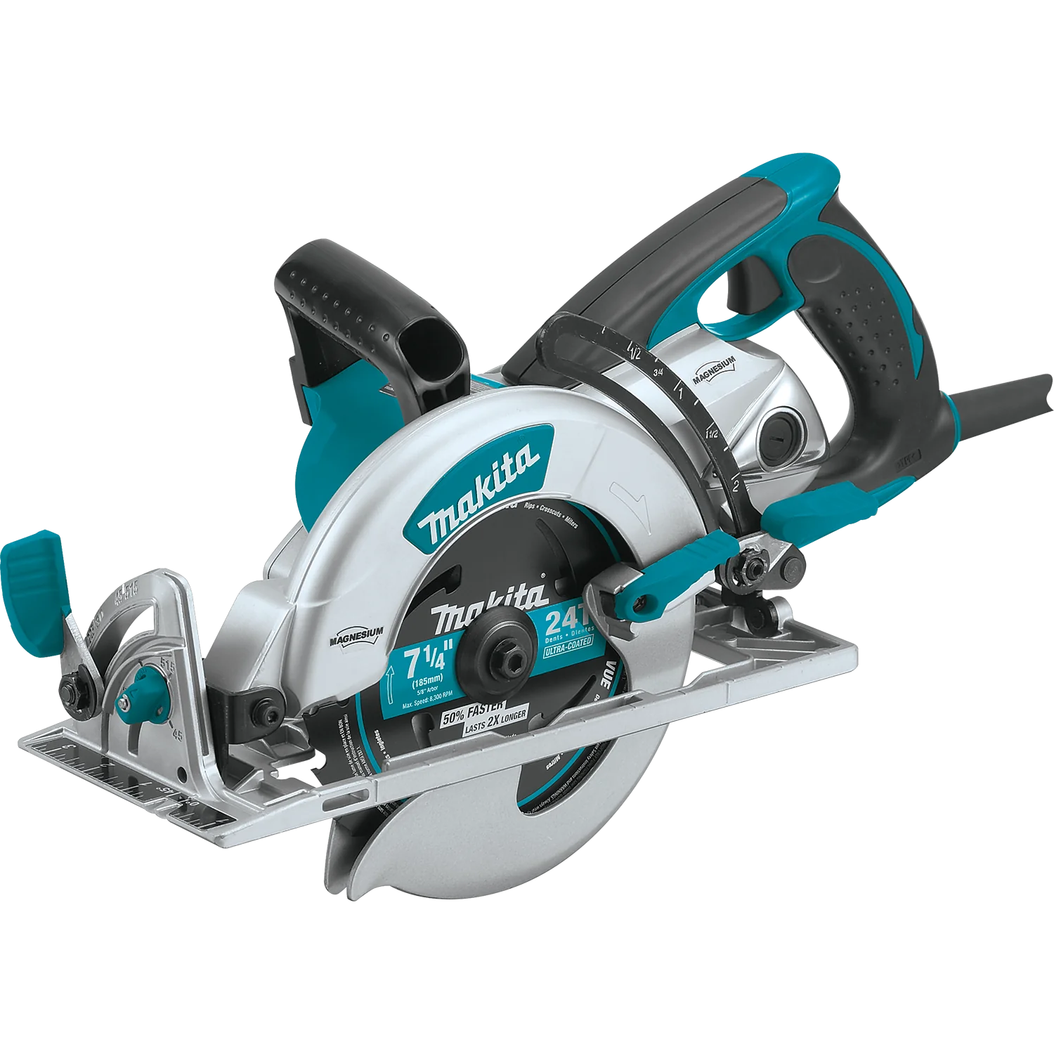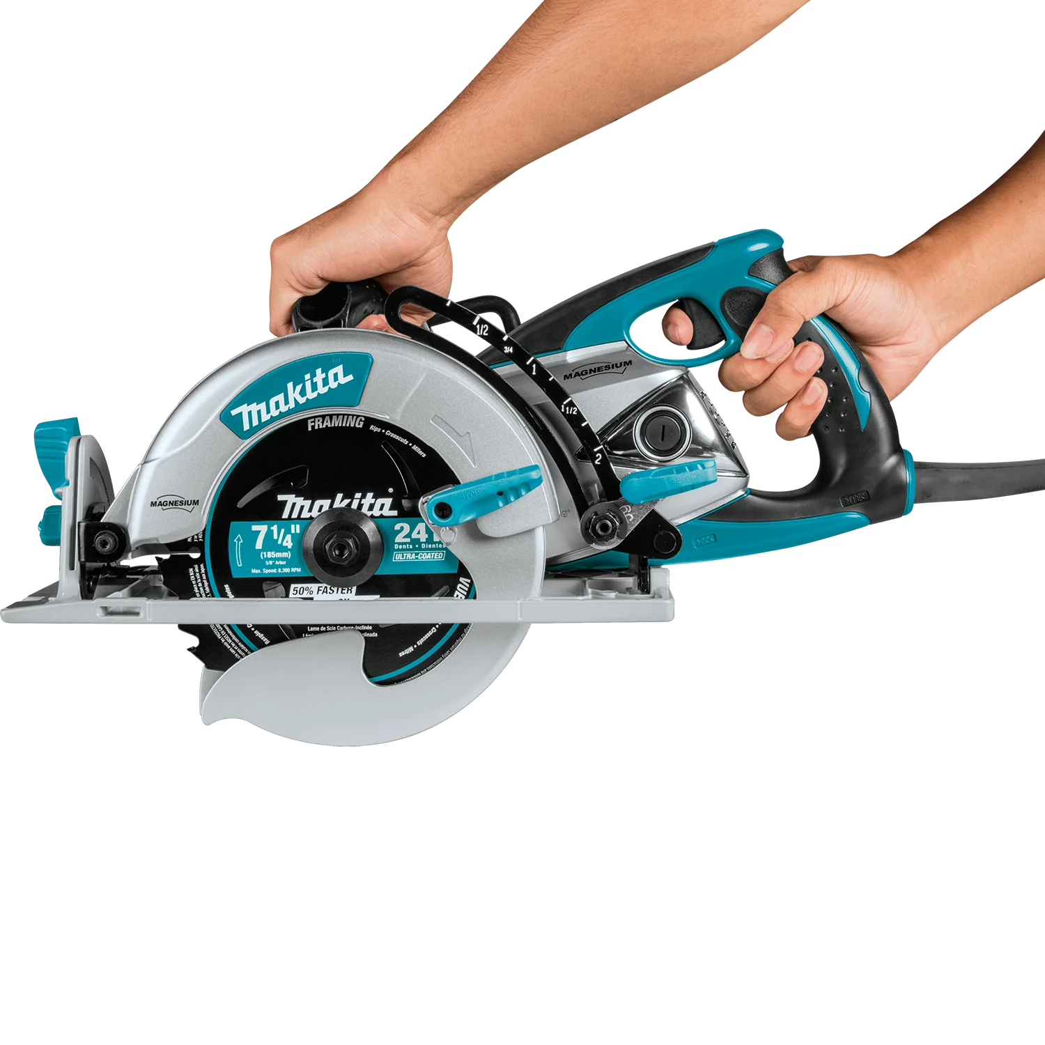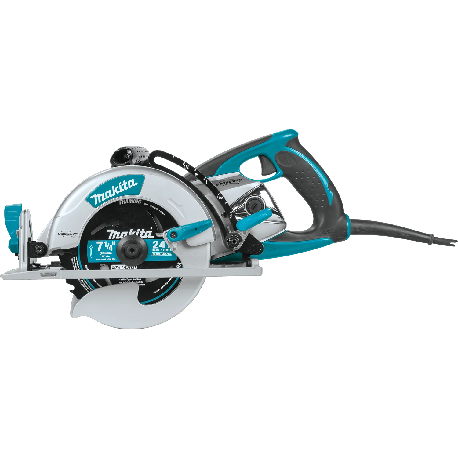 The Makita 7-1/4?? Magnesium Hypoid Saw features highly durable magnesium components and a powerful 15 AMP Makita-built industrial motor with a hypoid gearing system for maximum power output. The 5377MG seamlessly balances weight, power, durability, and ease of use for optimum cutting performance.