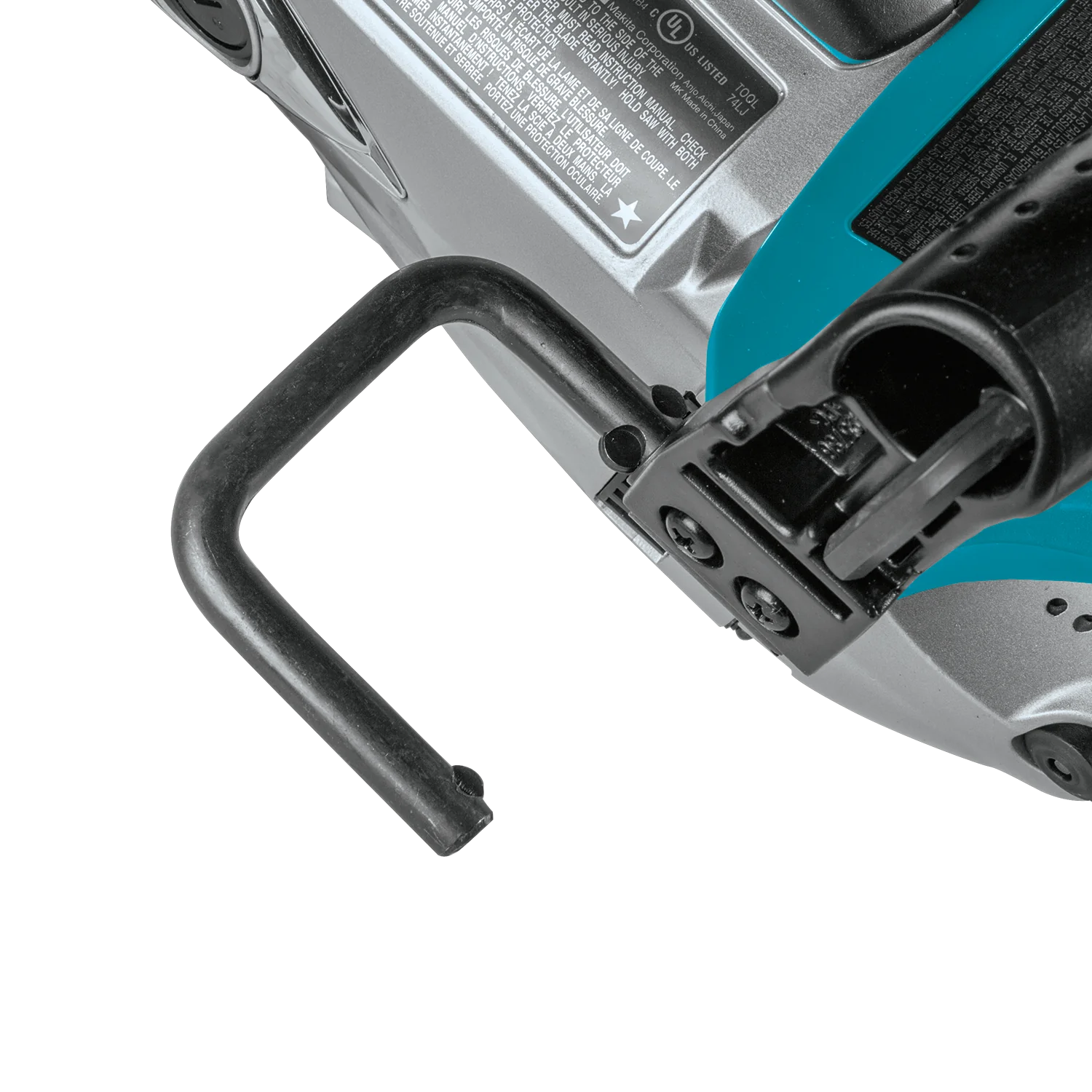 Magnesium components allowed Makita to engineer a saw with less weight (13.2 lbs.) that is well-balanced and jobsite tough. Additional design details include greater clearance between the rear handle and the blade case to provide a better grip for larger hands or for users with gloves, as well as a wider space between the blade and housing for a clearer view of the blade and measurement scale. Makita also engineered ergonomics and ease-of-use into the saw, including clearly visible depth and bevel markings and ergonomic hand grips to improve overall control while minimizing operator fatigue. The large rubberized levers provide quick, one-handed adjustments for more efficient work.