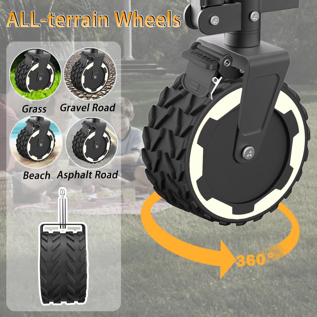 - Explore with Mellart Beach Wagon – Unmatched Versatility! Embark on memorable beach trips with our beach wagon with big wheels for sand. This beach cart offers unbeatable flexibility with 360?? rotating front wheels, each equipped with a brake for easy maneuvering on slopes. Its collapsible design ensures effortless storage after use.