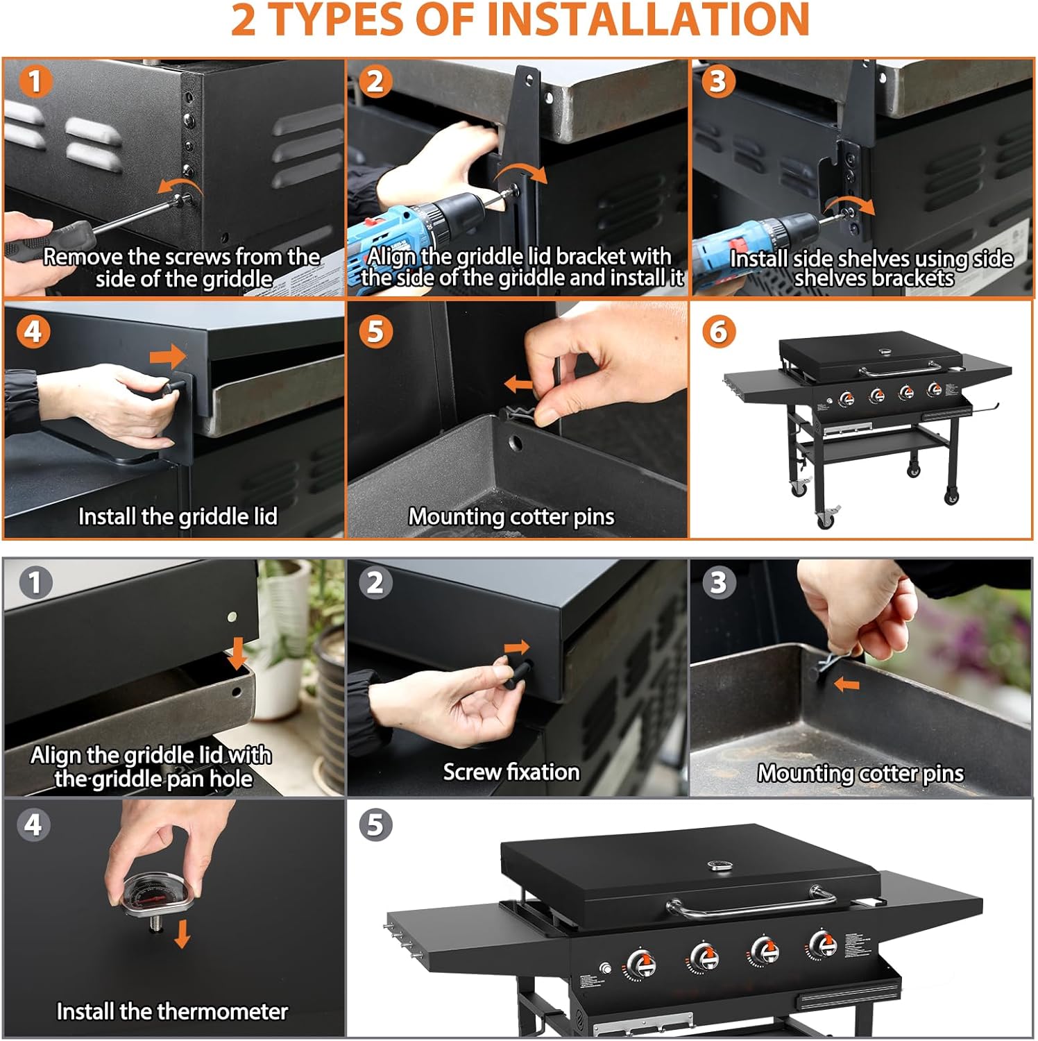 - The Essential Hinged Lid for Blackstone 36-Inch Griddles: This hinged lid is designed exclusively for Blackstone 36 inch flat top grills, including popular models like 1554, 1565, 1560, 1818, 1825, 1836, 1841, 1866, 1984, 2122