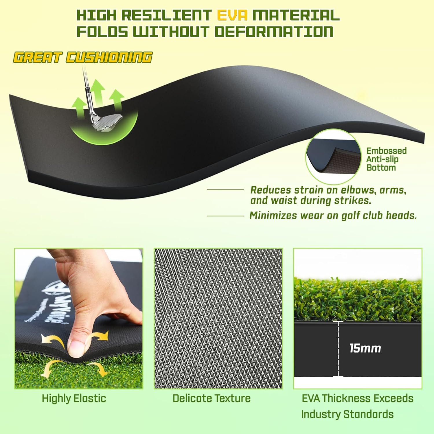- Precise Practice Essentials: Elevate your training with our golf practice swing mat – complete with fairway and rough turfs, tee box turf, striped fairway turf and velvet track mat; This versatile golf driving mat allows you to practice with precision, identifying and correcting slices, hooks, fat or thin shots; The golf impact mat ensures you refine your swing path effectively; Use the velvet track mat for targeted practice, enhancing your shot-making abilities and golf training effortlessly