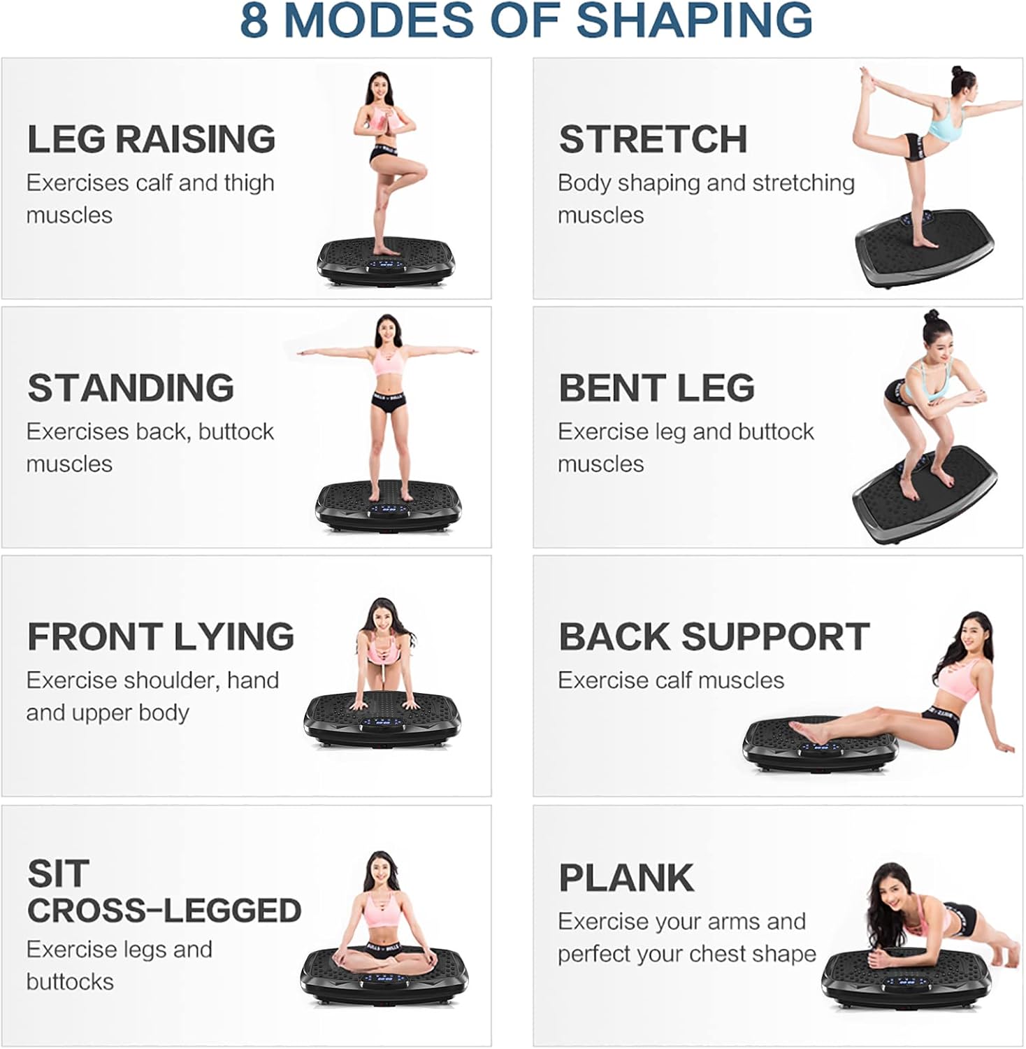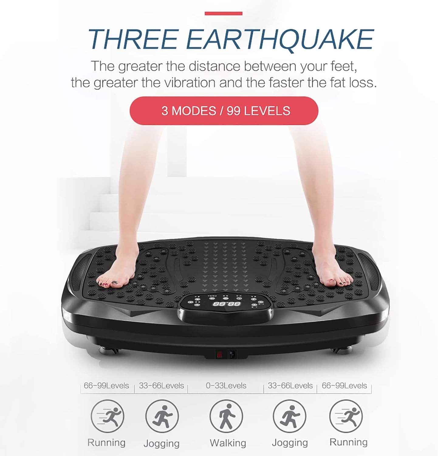- ??1 TO 99 SPEED SETTINGS??Remote easily controls the speed at the click of a button. LCD digital display has program selection, which can imitate walking, jogging, running, yoga, etc. This professional body vibration plate massager comes with 3 preset modes, allow you to try different vibration exercises or combine the vibration exercise with normal workout, sit-up, push-up, yoga, etc. Perfect for sports training, weight loss, burning fat.
