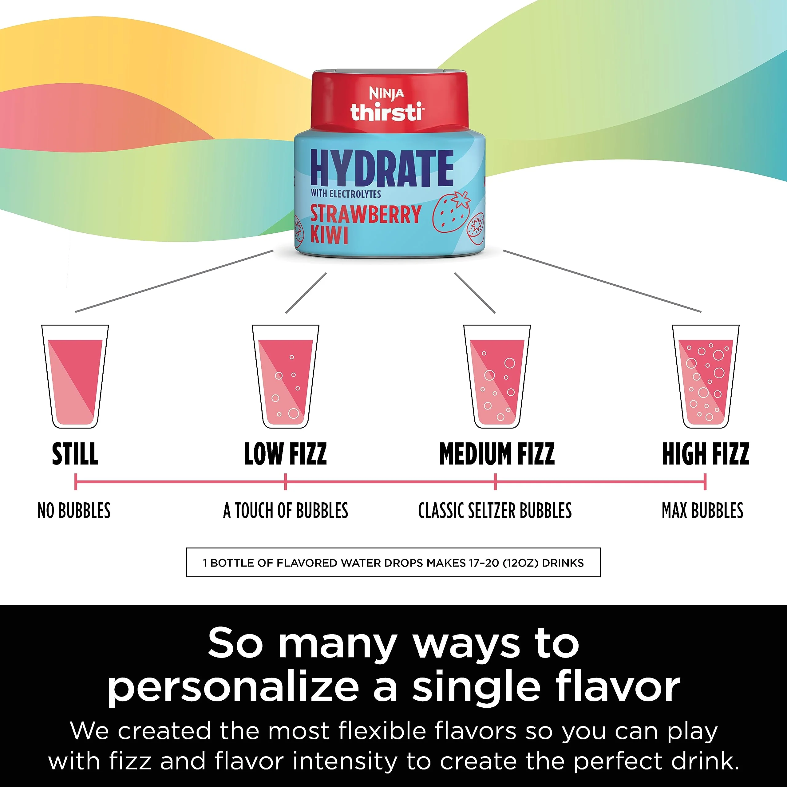 - WHAT’S INCLUDED: Ninja Thirsti Station, 48oz Removeable Temperature Sensitive Water Reservoir, 60L CO2 Cylinder, Variety of Flavored Water Drops.