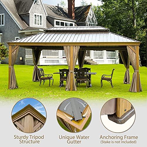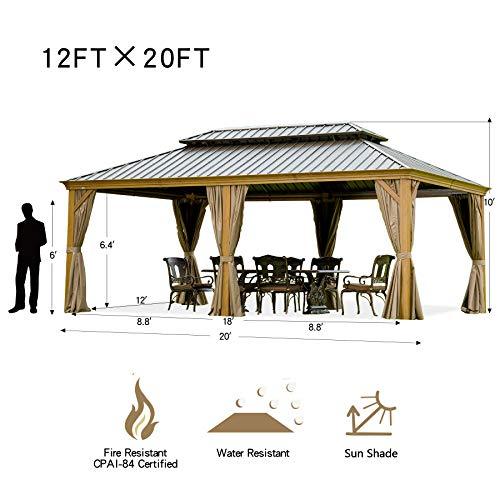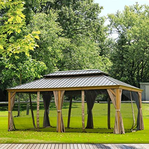 Outdoor Hardtop Gazebo 2021 New ?C Galvanized Steel Double Roof,Patio Gazebo Canopy with Privacy Curtains and Netting,WoodLooking Finish Aluminum Frame Cavus 12’X20?? by domi outdoor living