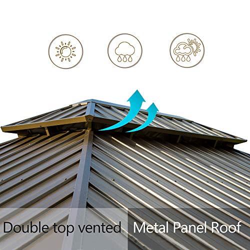 - ???VENTED DOUBLE HARDTOP??Compared with one layer design. this double gazebo canopy allows sunlight to pass though and provides excellent airflow. Galvanized steel metal top also help withstand heavy wind. which provide you a privacy. safe and cool room.