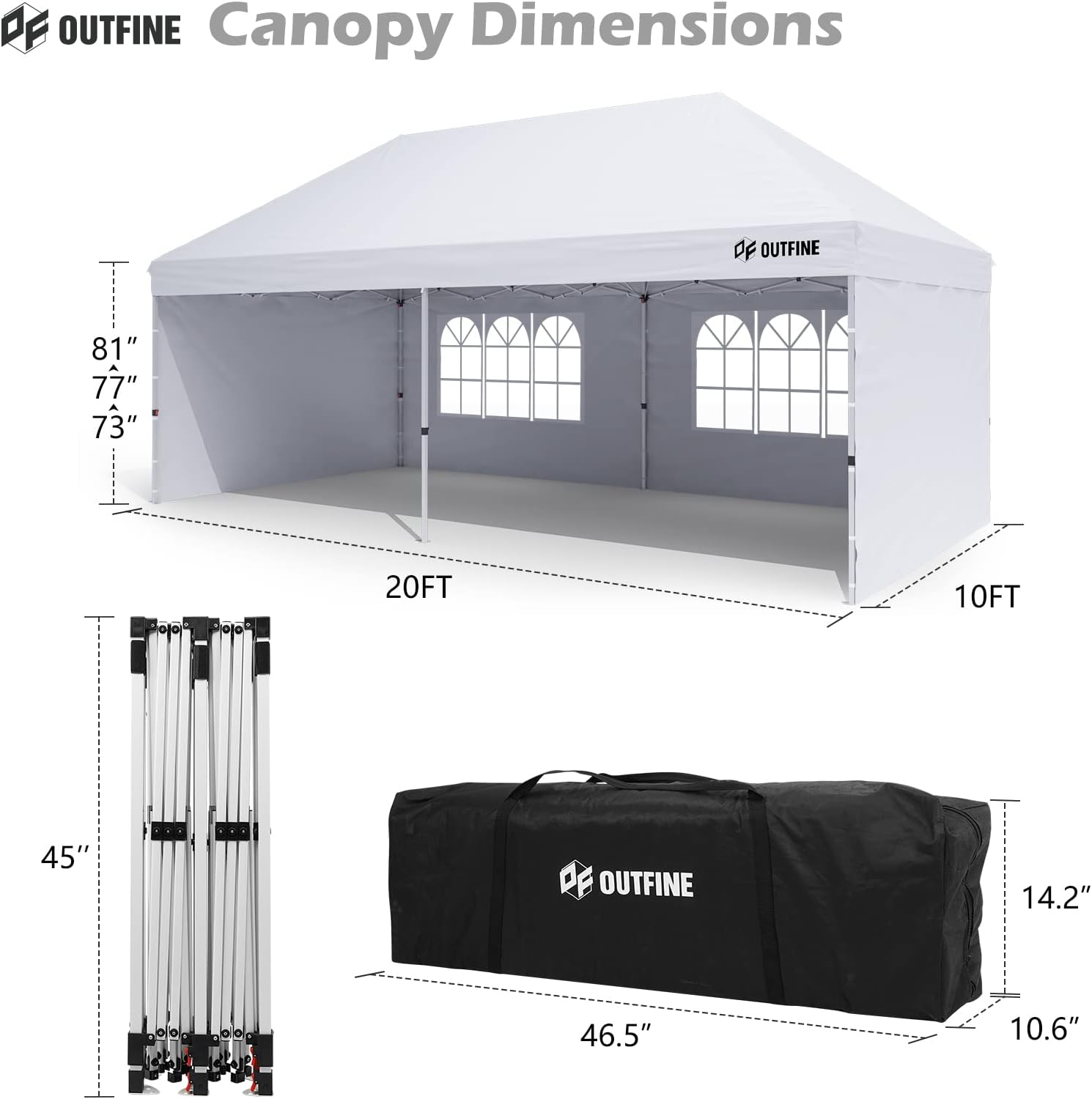 LARGE SUN SHELTER – The shadow coverage of OUTFINE canopy is 10′ x 20′ and it can accommodate 6 tables or 17-20 people at the same time. Offers 200 square feet of coverage, making it easy to sell products or hold events in the shade.