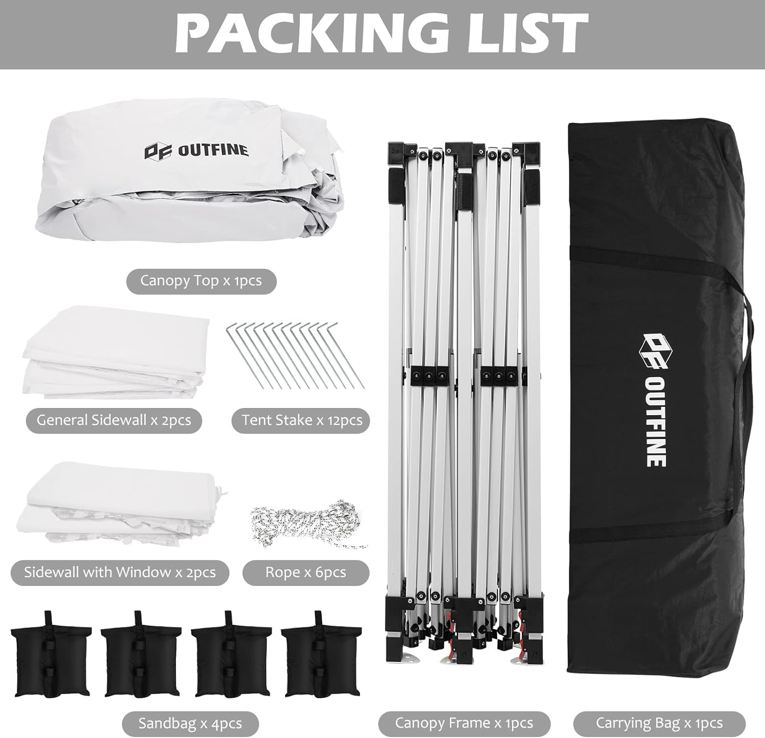 OUTFINE Pop Up Canopy Gazebo with 4 Removable Sidewalls