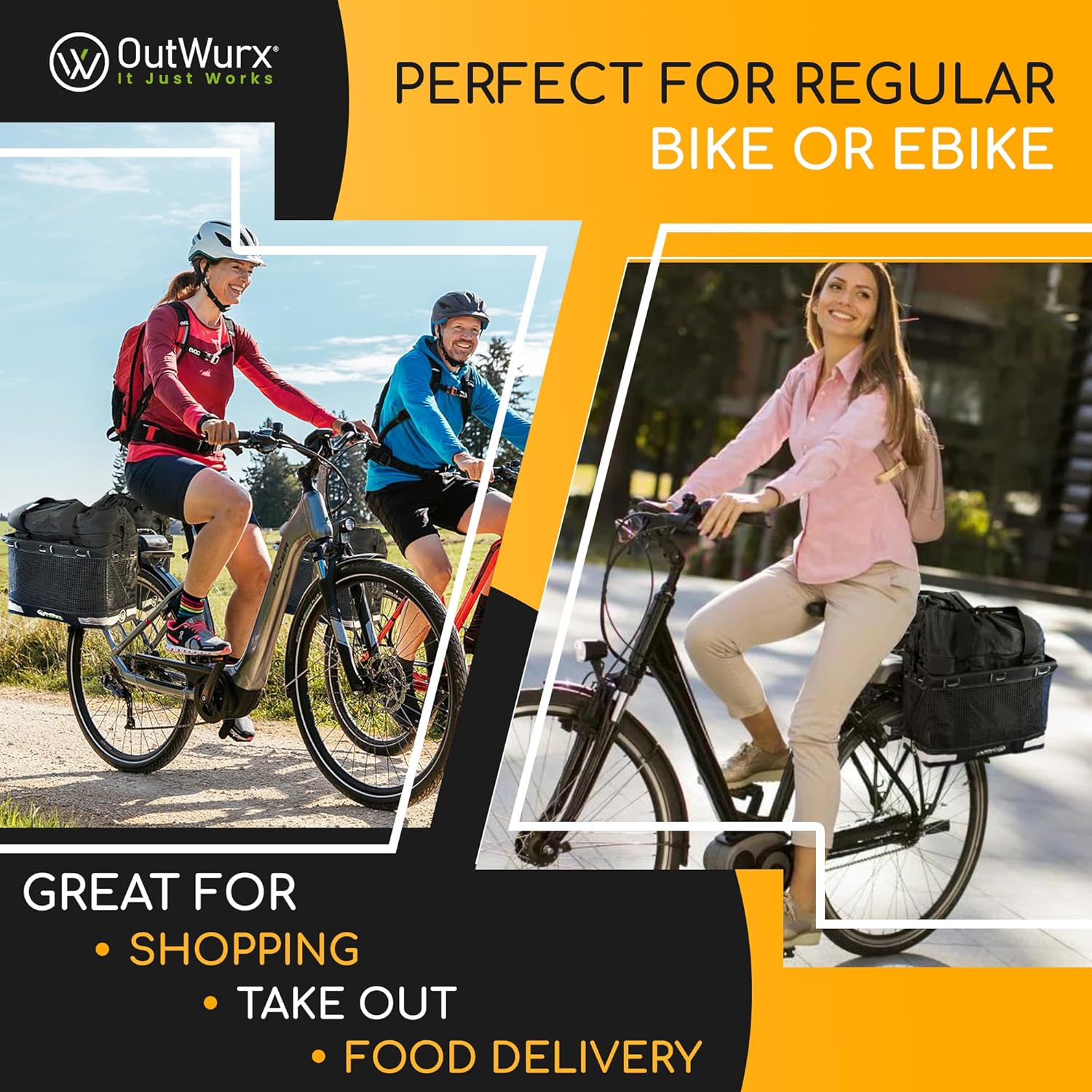 OutWurx Water Resistant Rear Rack Bags with Detachable Inner Grocery Bag & Folding Basket