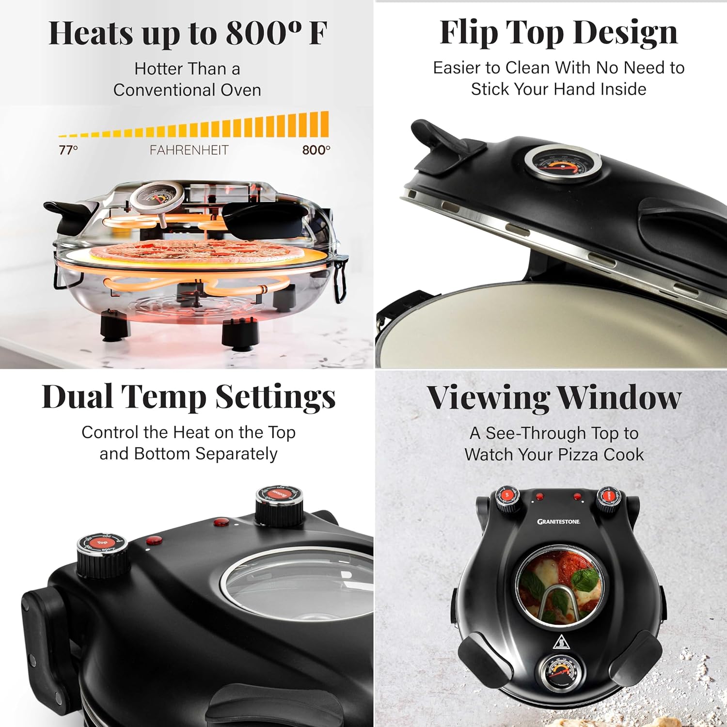 PIEZANO Crispy Crust Pizza Oven by Granitestone ??Electric Pizza Oven Indoor Portable 12 Inch Indoor Pizza Oven Countertop Pizza Maker Heats up to 800?F for Stone Baked Pizza at Home As Seen on TV
