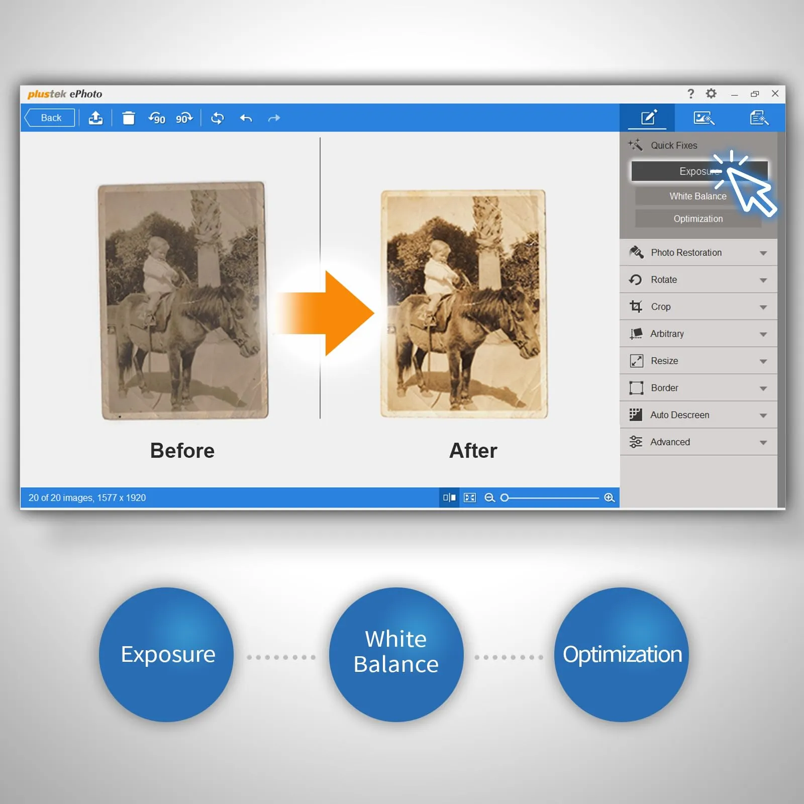 • Powerful Image Enhancement functions included. Quickly enhance and restore old faded images with a click of the mouse.