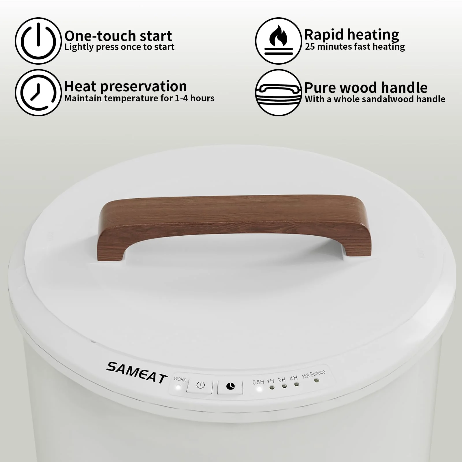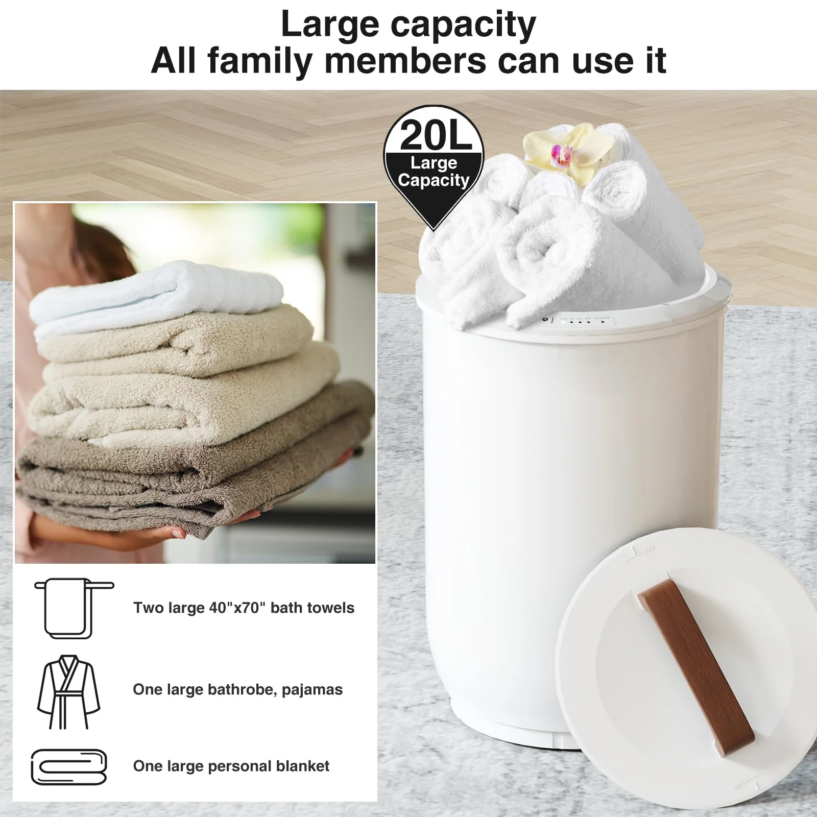 Extra Large Capacity Towel Warmer: The ultra-large Bucket towel warmers for bathroom, accommodates up to two 40" X 70" oversized bath towels, bathrobes, blankets, PJ's and more.You can safely heat cotton materials, but please avoid heating chemical fiber towels or clothing, as well as any materials that are not heat-resistant. Also, do not use it to dry wet towels or other items that are still damp. Heats up rapidly and 4 Timer Settings: The bath towel warmer can be heated up quickly to a comfortable temperature, the built-in timer can keep your towels warm for 30min, 1h, 2h or 4h before it shuts off automatically.The built-in timer defaults to 30 minutes upon startup, requiring no further adjustment, and the timer indicator remains unlit during this 30-minute interval. Thermos Bucket Design: The towel warmer will heat towels all the way through! No cold spot anymore. Enter a whole warmer world when you step out of the shower.Please take note of the surface warning: It is not safe to touch the interior of the bucket when the hot surface indicator light is on. Best Gifts for Women, Mom: Gifts for people who like to living, Good gift ideas for Mother's Day, birthday, Christmas, Valentine's Day, Thanksgiving, wedding party, anniversary, and special occasions. Our After Sale Service: SAMEAT friendly and reliable customer service will respond to you within 24 hours. You can purchase with confidence, with our 30-day return and 12-month replacement.ETL safety certified product. Specifications: