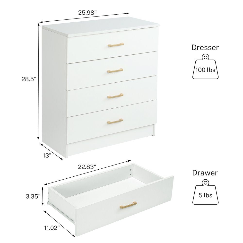 SEGMART White 4-Drawer Wood Dressers for Bedroom