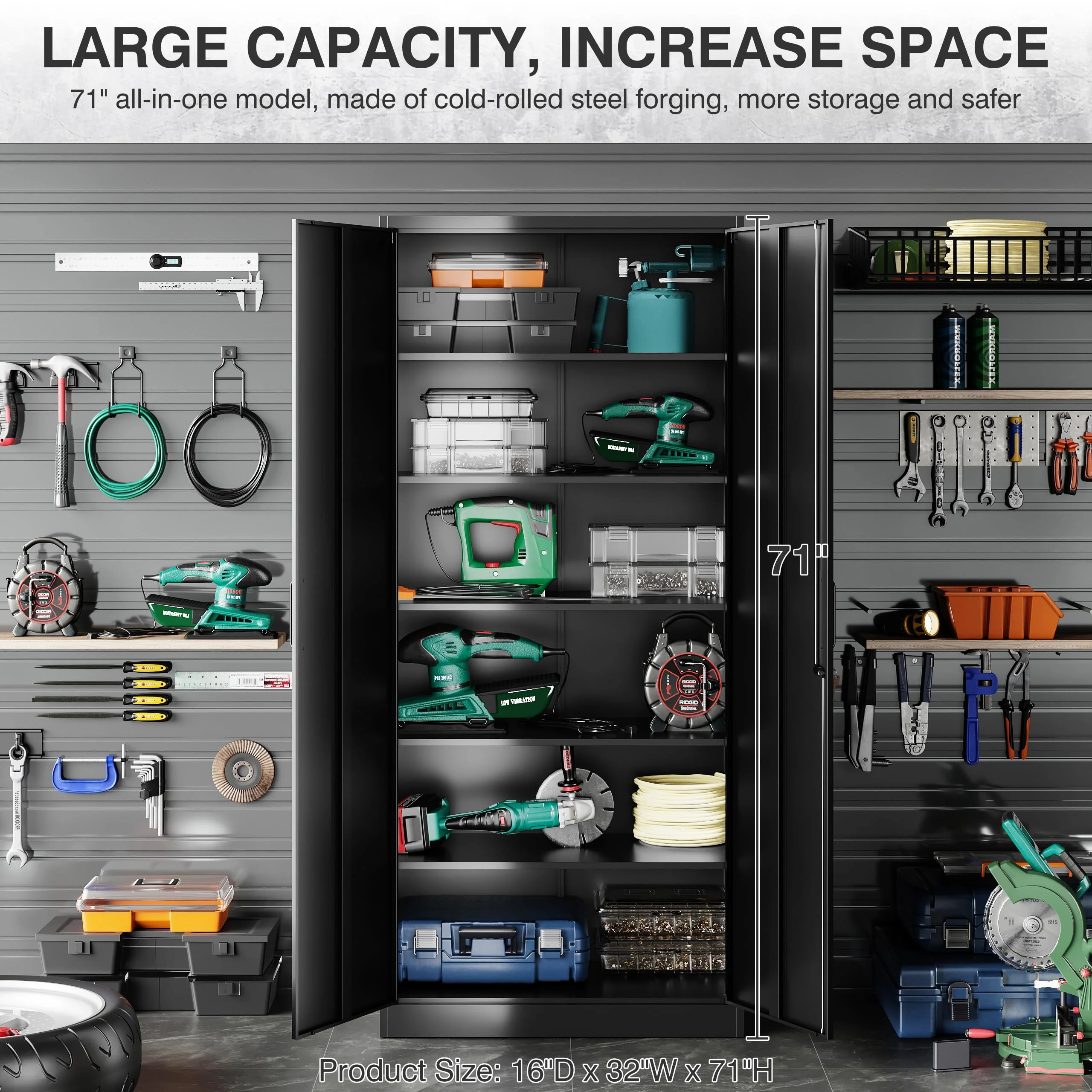 SISESOL 71″ Metal Garage Storage Cabinet with 2 Doors
