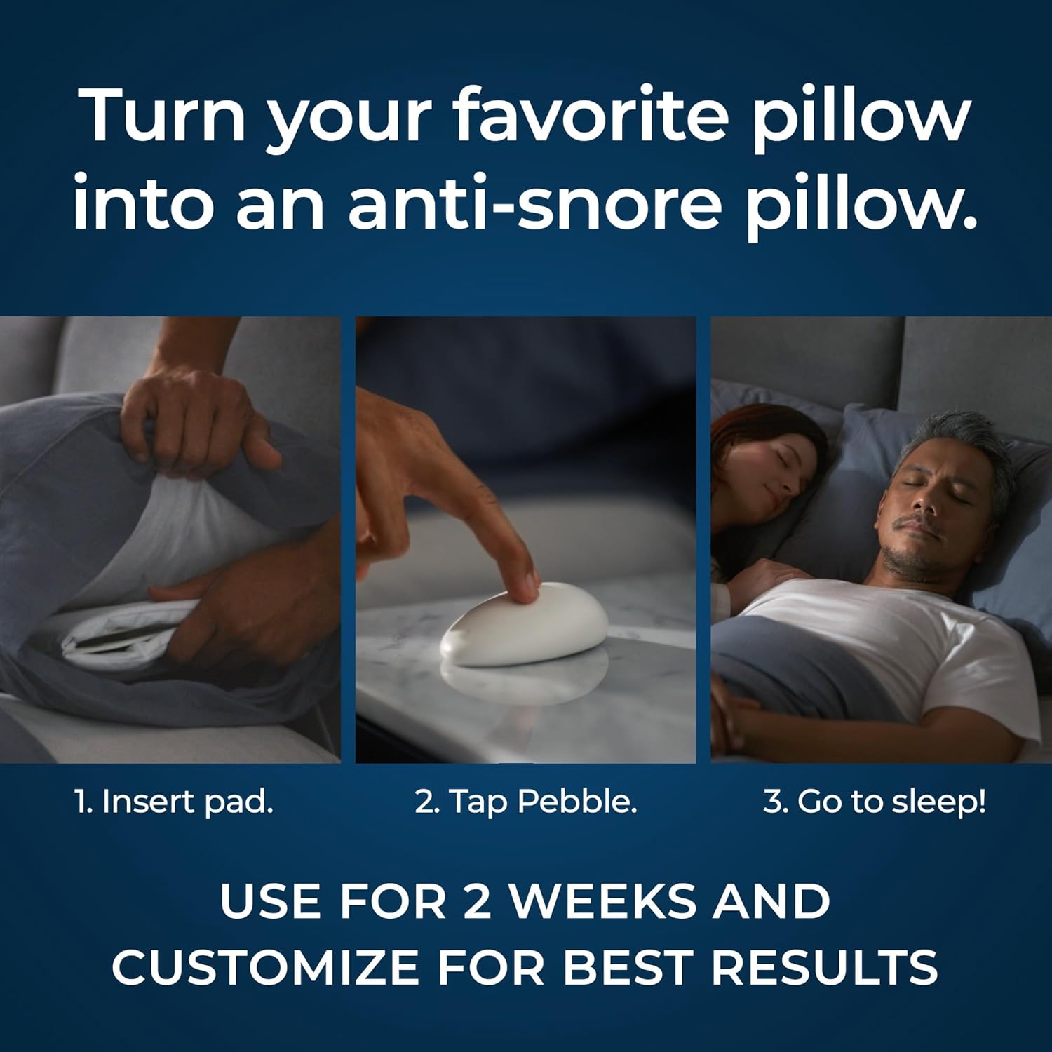 - TURN YOUR FAVORITE PILLOW INTO AN ANTI-SNORE PILLOW. Easy to set up and use. Slide the inflatable pad under your pillow, turn on the AI-powered pebble, and sleep in any position