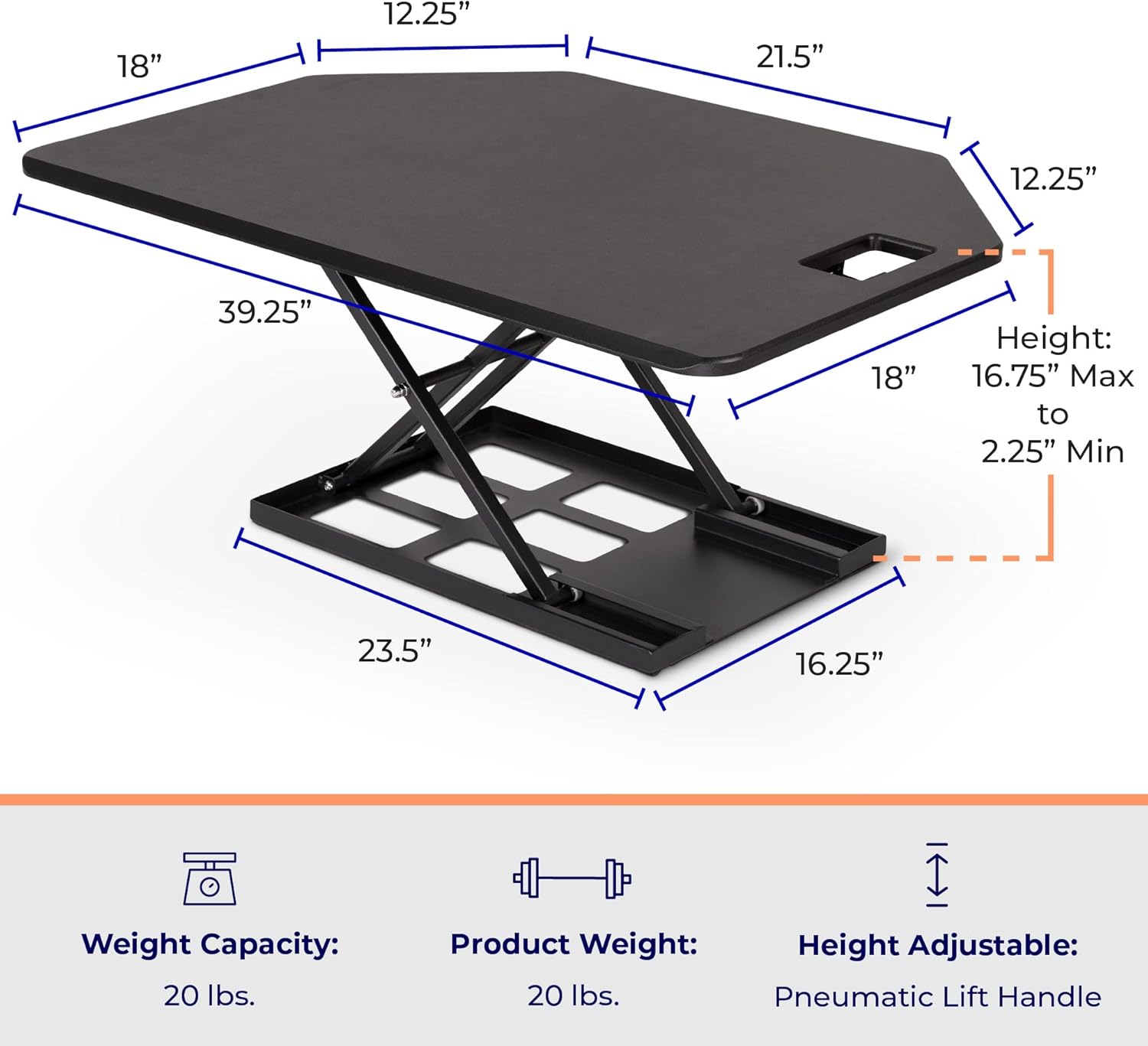 - Effortless Transition – The X-Elite’s premier pneumatic pump allows for a smooth, air-assisted lift, enabling this adjustable standing desk converter to transition from sitting to standing height in seconds, reaching up to 16.75?? above the desk or tabletop.