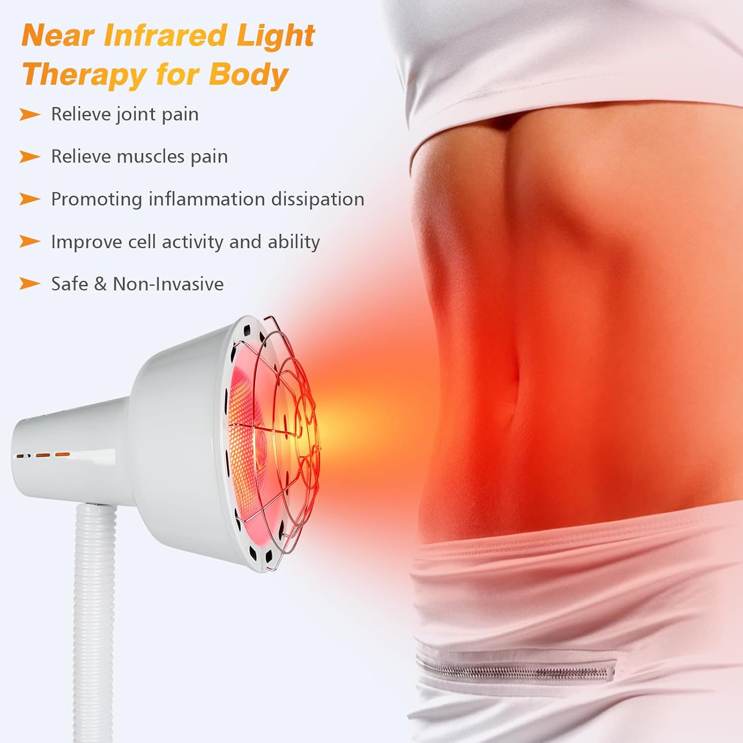 - [Relieve Body Pain] For sore muscles, sore legs, sore backs, sore knees, sore shoulders, sore elbows, sore lower back muscles, cervical pain and other joint pains, the Near Infrared Lamp is the ideal choice. Simply illuminate your body for 10-30 minutes at a time to relieve pain and discomfort. To avoid eye damage, please wear our glasses or do not look directly at the light bulb.