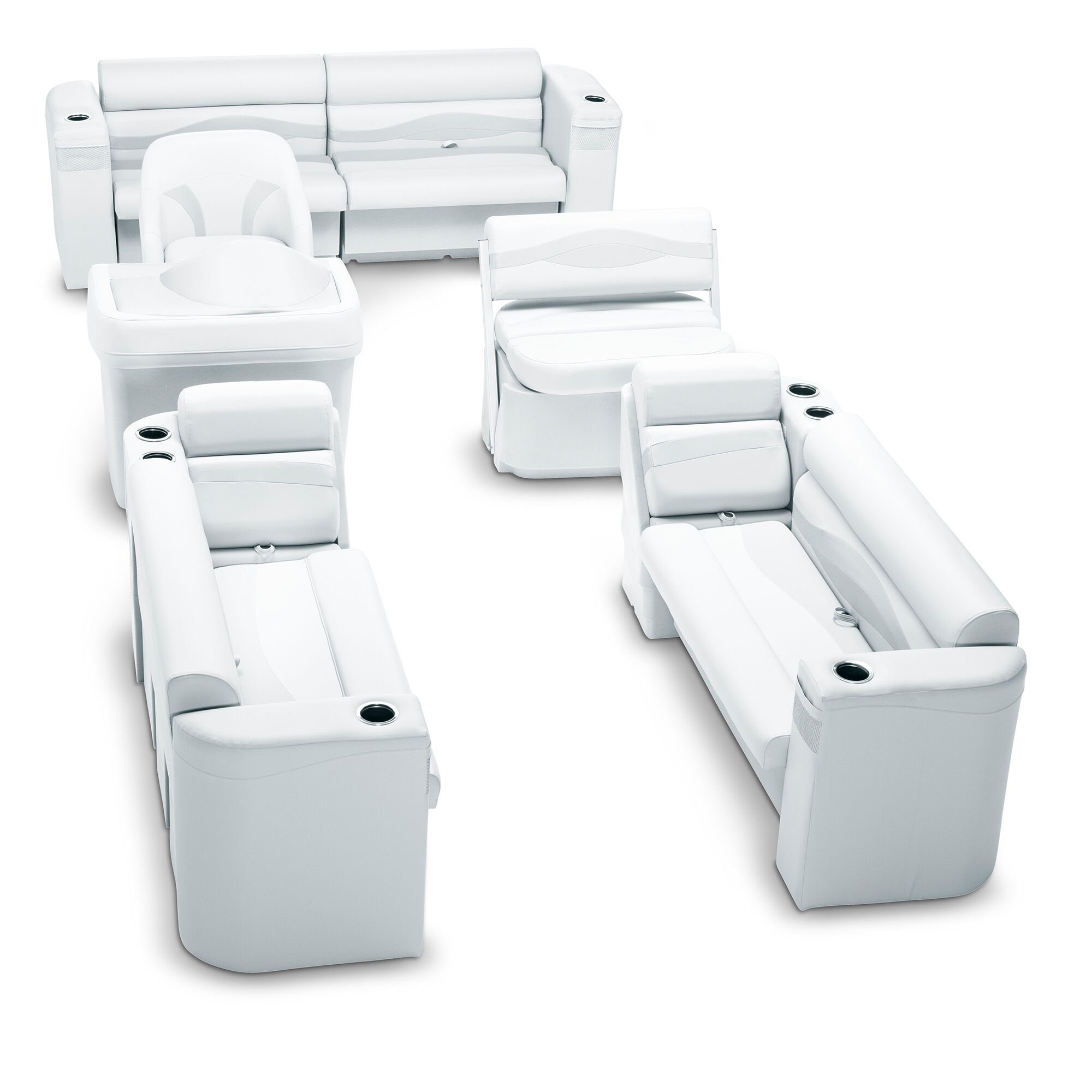 Taylor Made’s Premium Pontoon Seating Kit is constructed for comfort. durability. and longevity. The rotationally-molded. marine-grade polyethylene frames are designed to resist warping with thicker polyethylene walls. and aluminum seat hinges and stainless steel hardware resist corrosion. The seats features multiple foam densities that provide support and comfort. and include dry storage areas and live well ready compartments with channels built-in to assist with drainage.