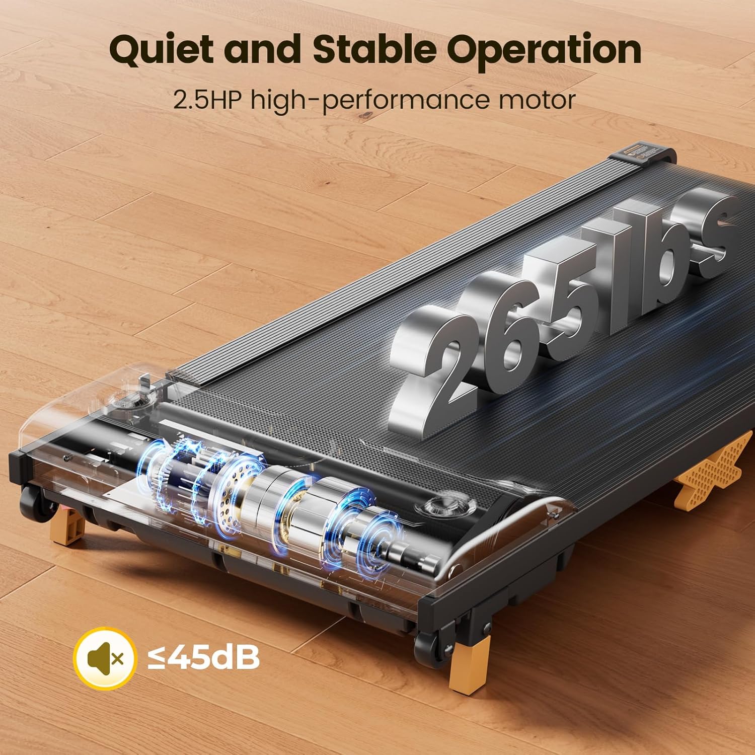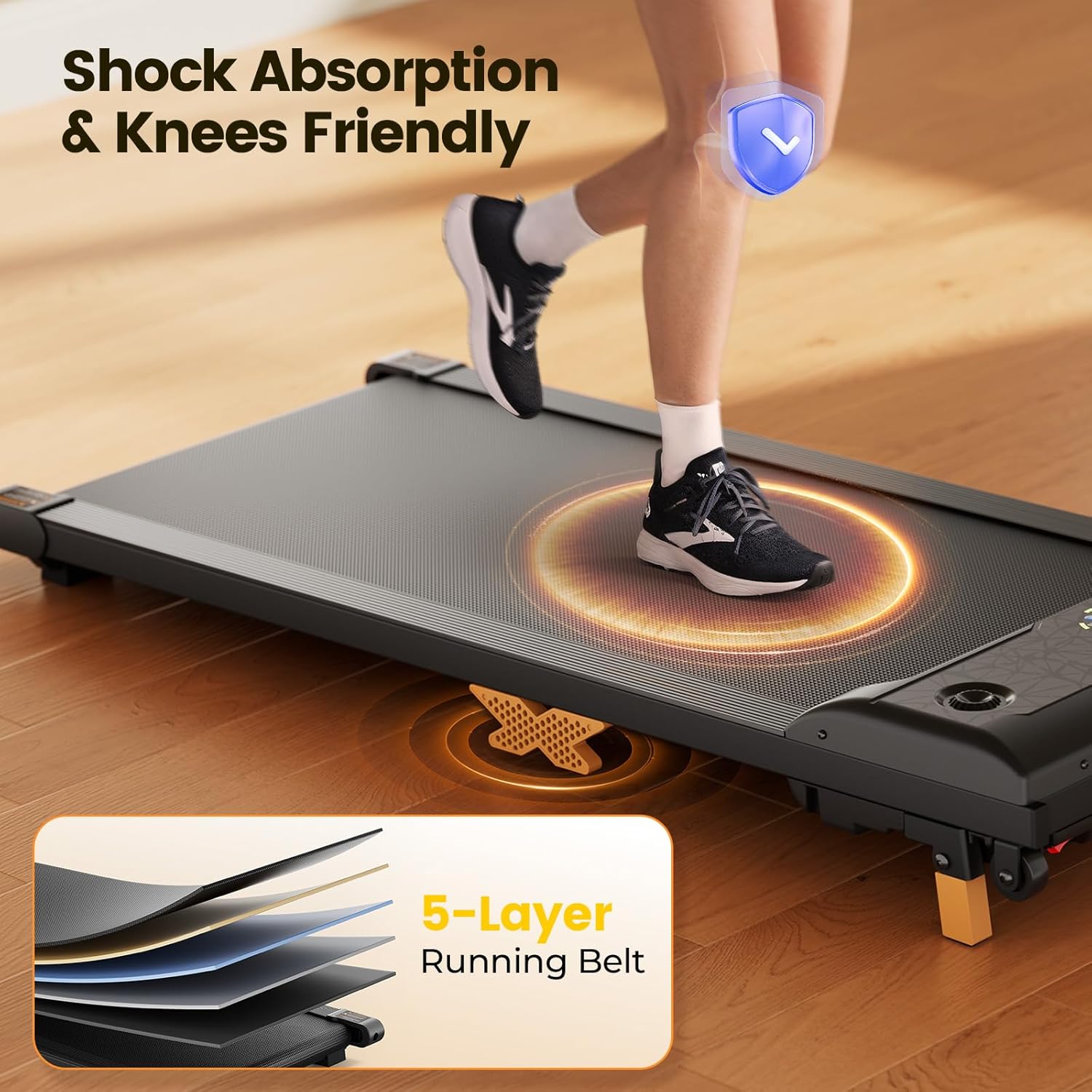 - Triple Shock-absorbing Design: This walking treadmill has 5-layer running belt, 8 silicone shock absorbers and double honeycomb soft rubber pads at the bottom; Provides better cushioning and protects your knees and joints to the greatest extent