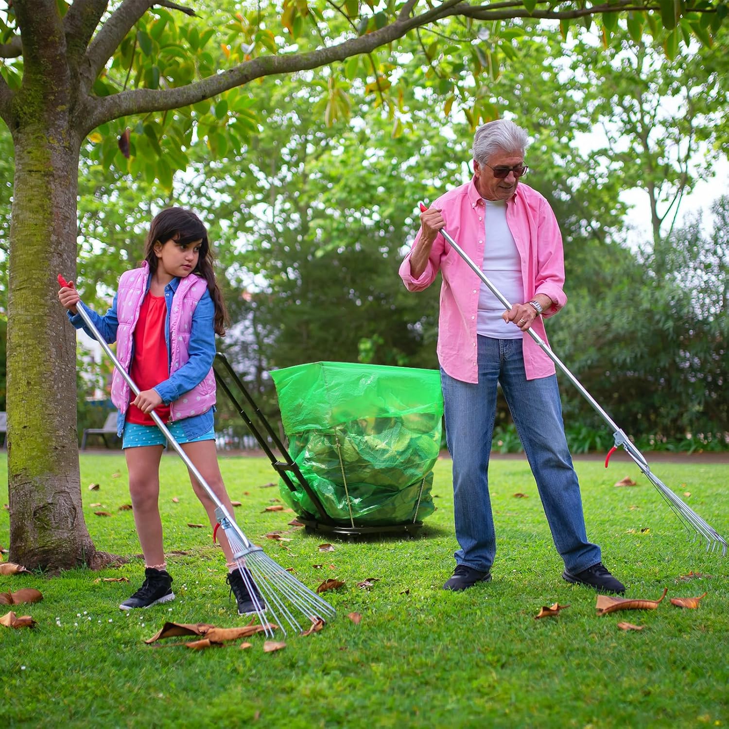 - ??Multifunctional Design??Is a special product that combines the functions of a yard garbage rack and a handcart. The bottom of the leaf bag holder is equipped with 4 steering wheels and handles for easy movement. Package Accessories: Reusable Yard Waste Bag * 1, Elastic Rope * 1