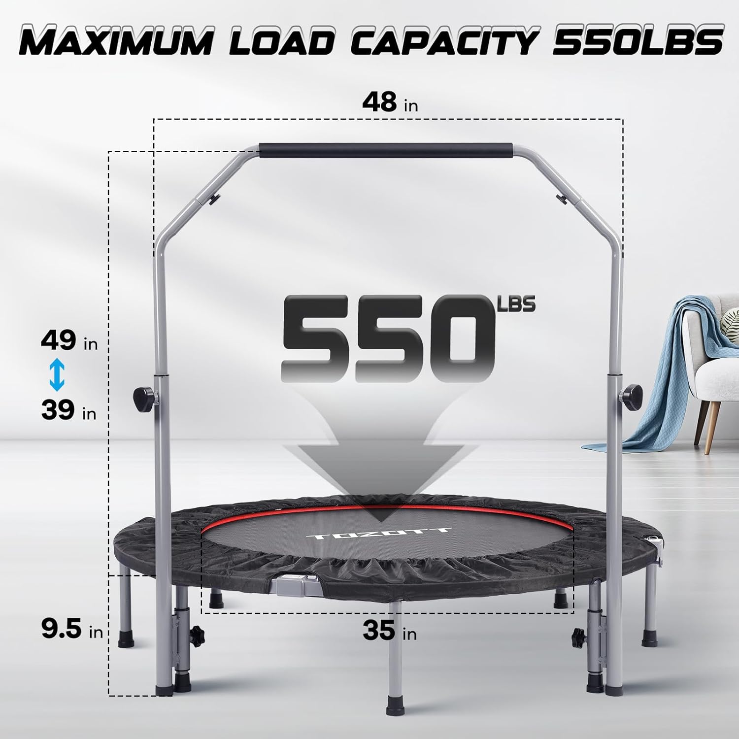 - TOZOTT Mini rebounder is made of high quality non-slip PP jumping mat to reduce noise, 32 high strength stainless steel anti-corrosion springs and heavy duty steel frame, can withstand up to 330lbs