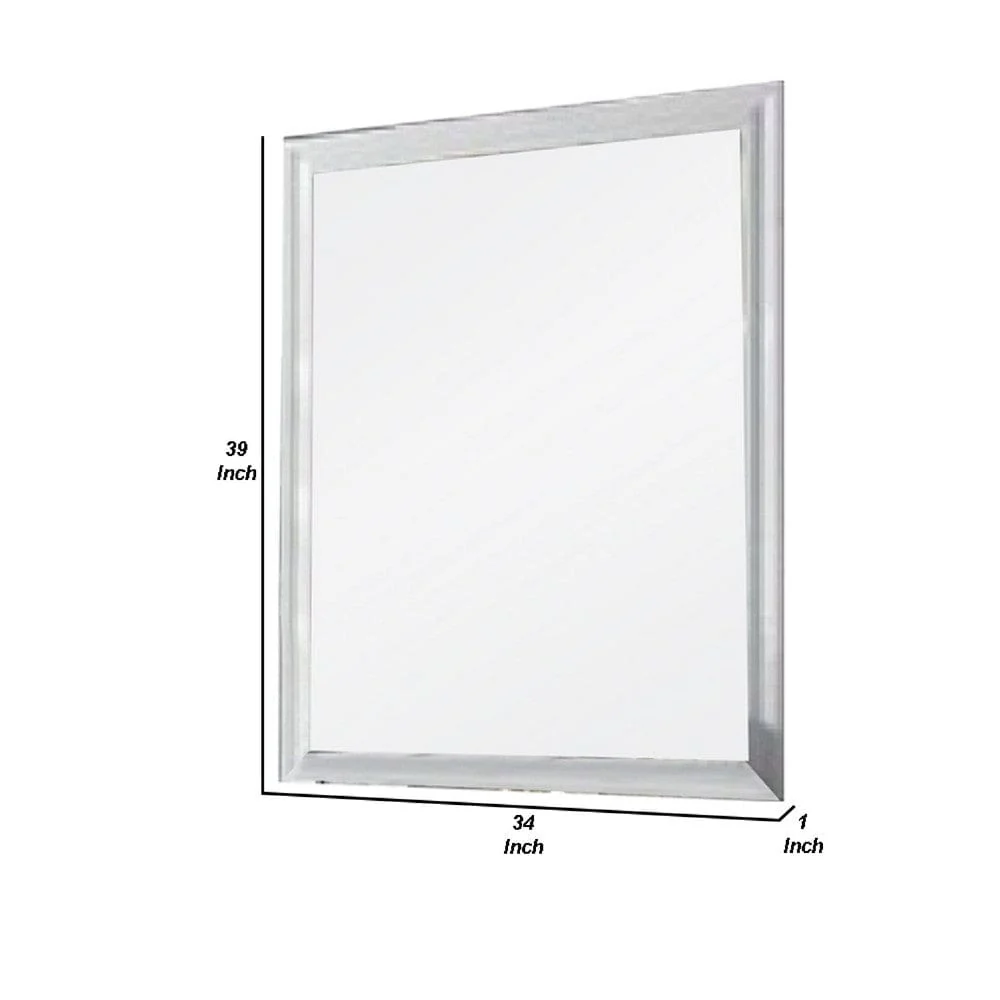 Tyra 39 Inch Wall Mirror,Rectangular Wood Frame,White By Casagear Home