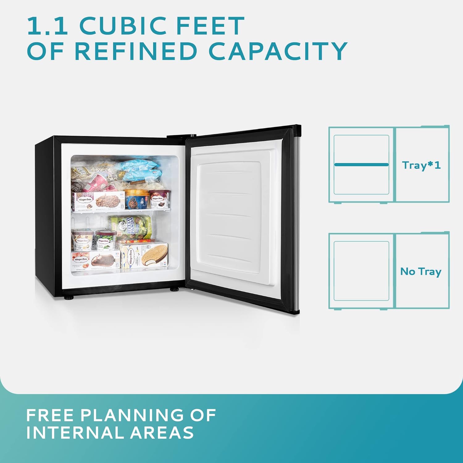 • FUNCTION UPGRADES – Euhomy freezer have designed some additional functions that are different from those on the market according to people’s habits and needs. REVERSIBLE DOOR: It is easy to change the direction of the door switch. ADJUSTABLE FEET: keep the machine from being corroded by moisture on the ground. BUILT-IN HANDLE: not only easier to open the freezer door, but also makes the freezer more simple and beautiful.