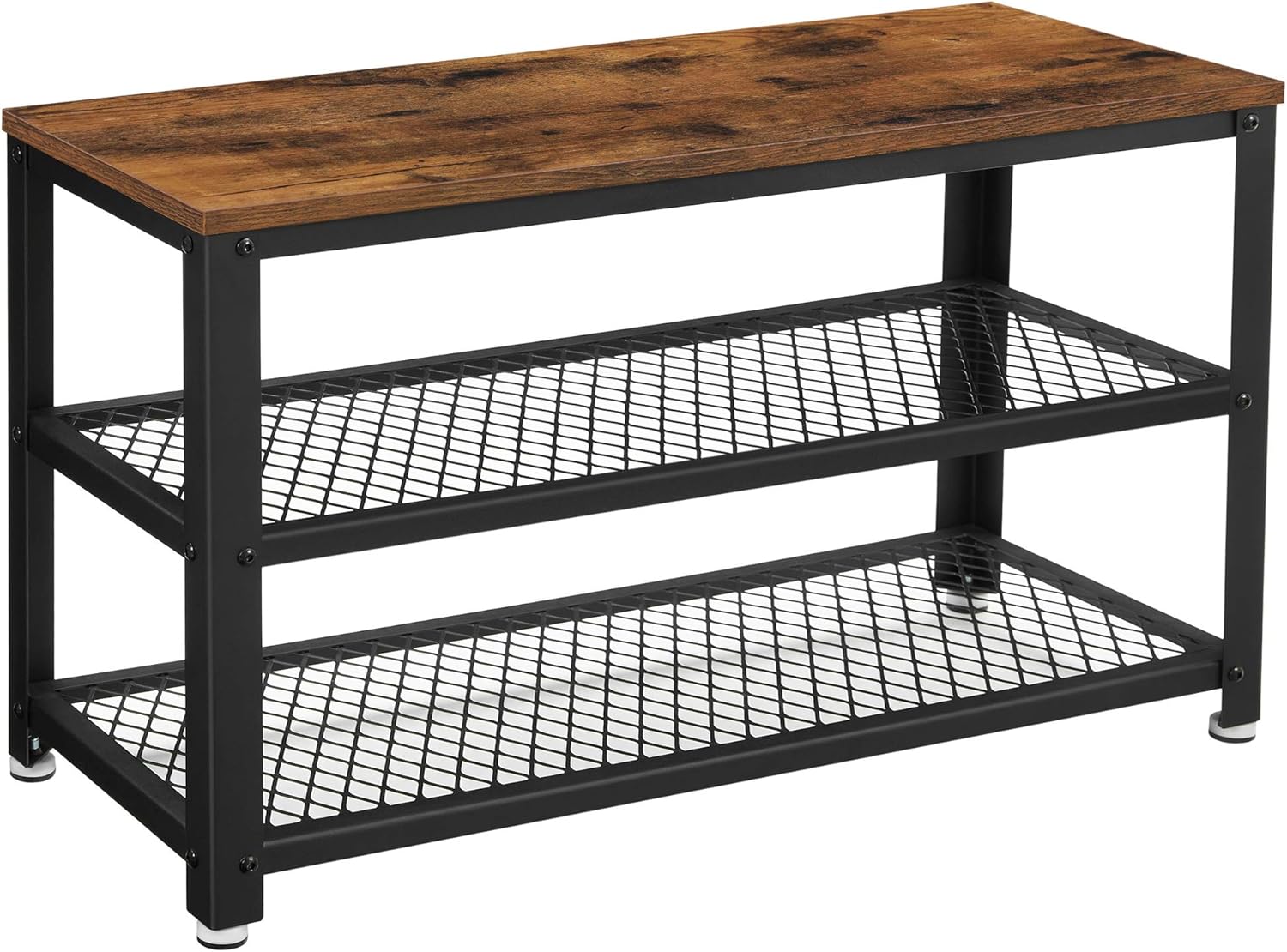 - Welcome home: Don’t let an empty and dull entrance await you when you get home. Add this shoe bench with warm rustic brown wood surface and black metal frame. Your entrance will have a different taste