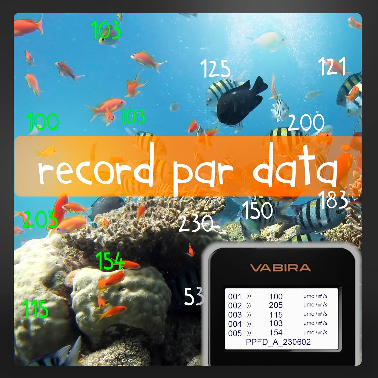 - Test the PAR for kinds of lights accurately. Can search “compare” in Q&A to see the comparison between VBR-AQUA and other brand.