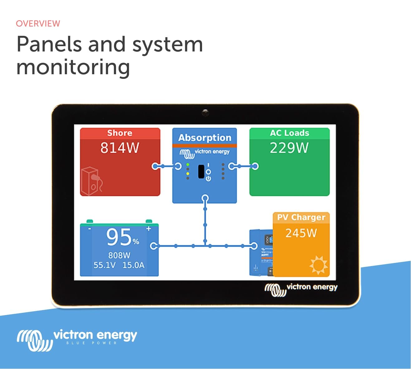 - Simply connected to the Cerbo GX with one cable, its super slim waterproof design, top-mountable setup and its simple installation bring a lot of flexibility when creating a crisp and clean dashboard