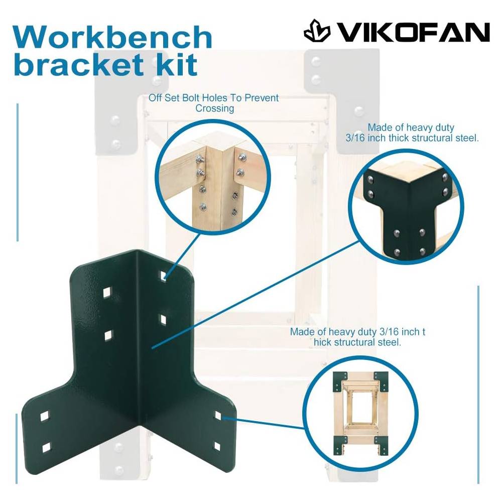 - Material: The workbench bracket kit made of heavy duty 3/16 inch thick structural steel.Coated with green powder.(Point of improvement??