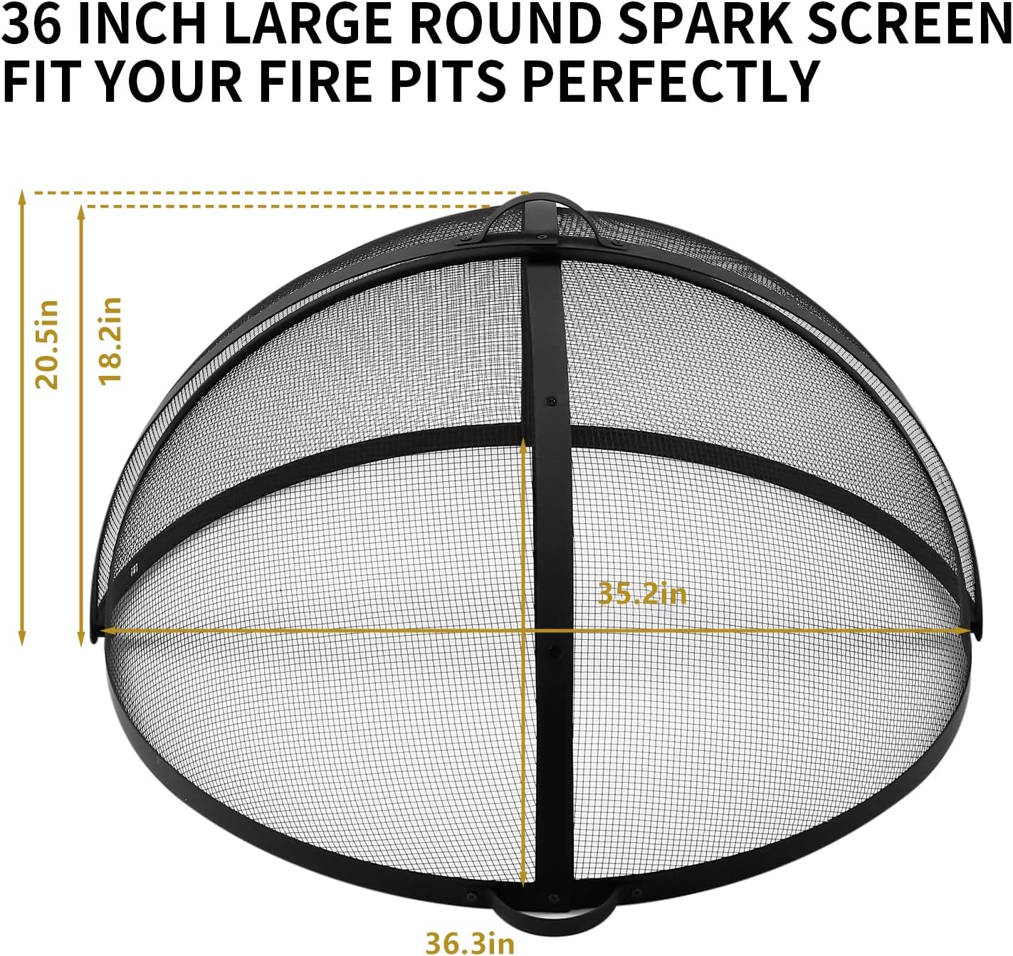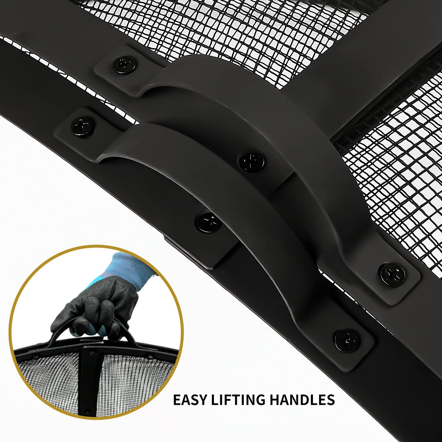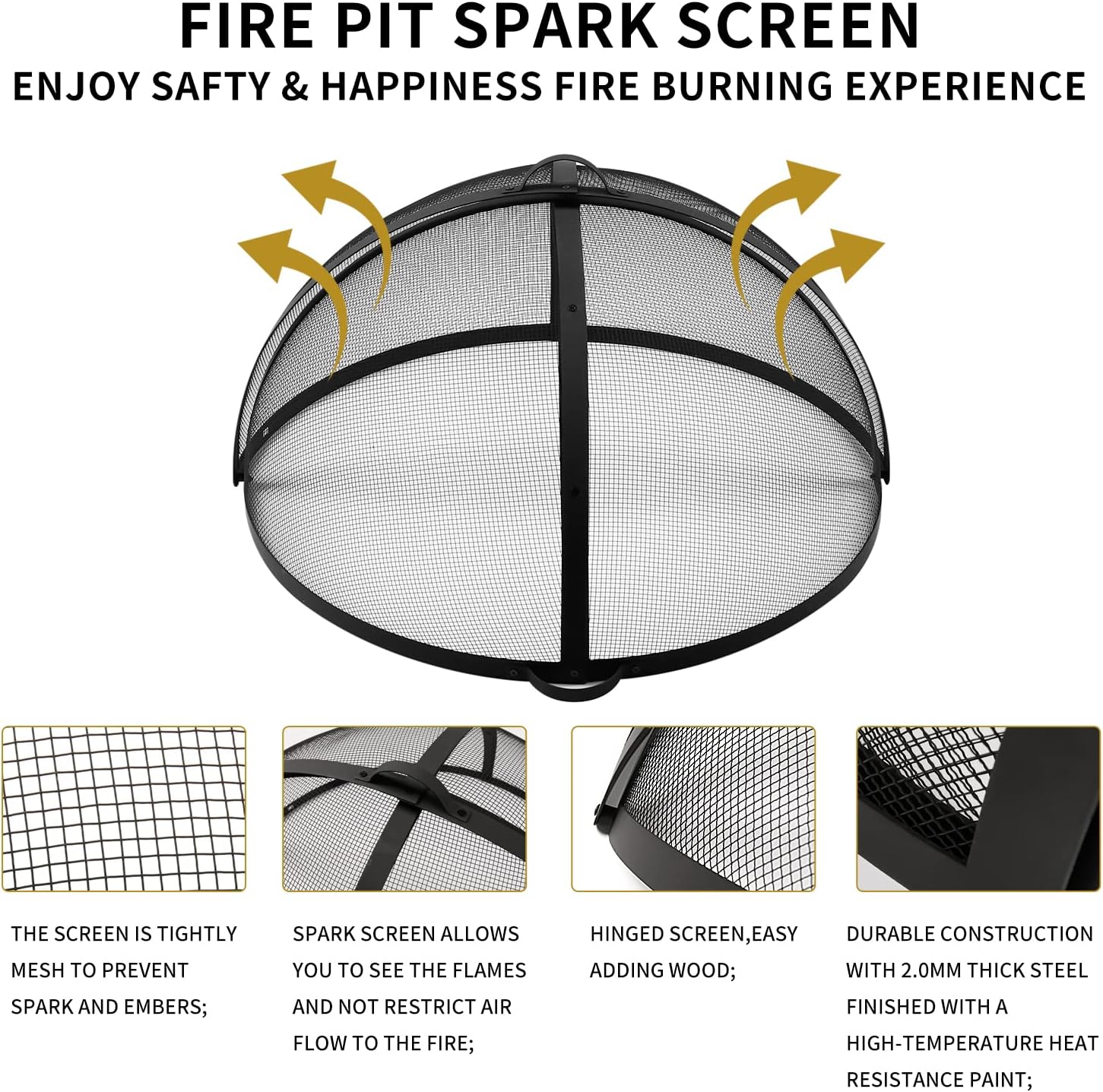 - Excellent Secure Firepit Spark Screen:With 2 mm mesh design, fire pit screen has better effects on keeping sparks and embers from escaping; With hinge opening, round fire pits spark screen guard enables you to add woods and tend the fire securely without completely removing the screen.With 2 handles,it is convenient handle on top to lift the screen on and off